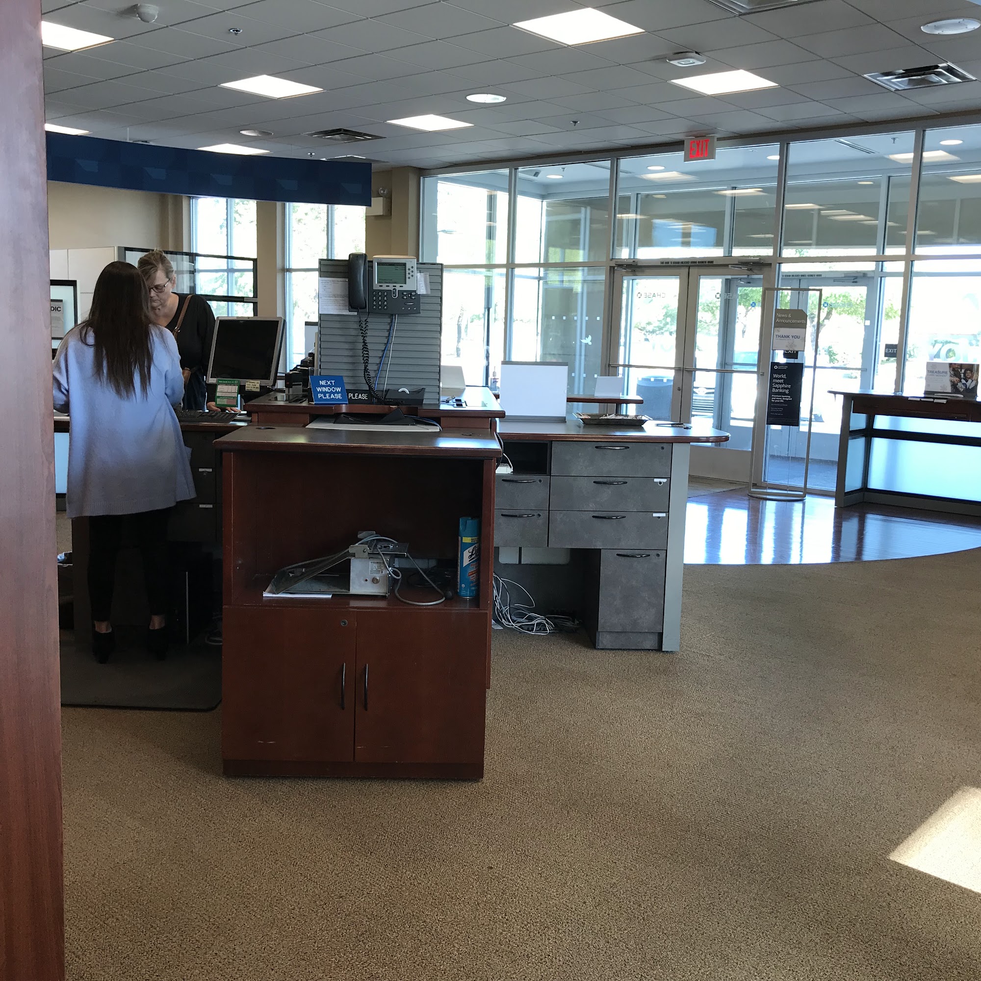 The customer service at this Chase bank location is outstanding each time. Employees are wonderful, kind and always get right to work. They check money, greet customers, and keep the experience great. People are happy with how the bank is set up inside and the drive through is quick. Tellers assist inside and in the drive through, taking care of customers who need extra help. Lines are rarely long and never take as long as at other banks. Notary service is always available and employees are friendly, professional and caring. The staff is fast, efficient and ready to be of service during stressful times. Customers who have banked here for years keep coming back because the service is great and the branch has all needed.