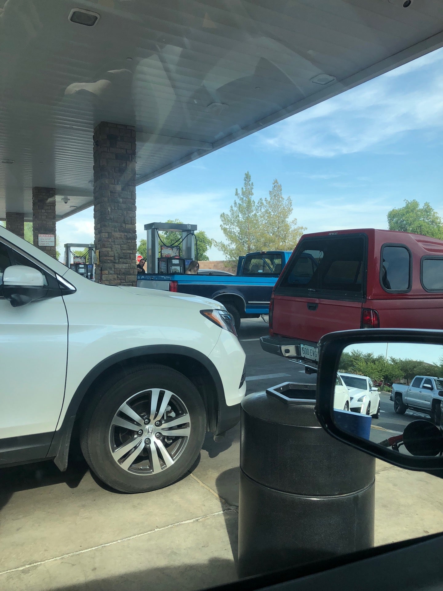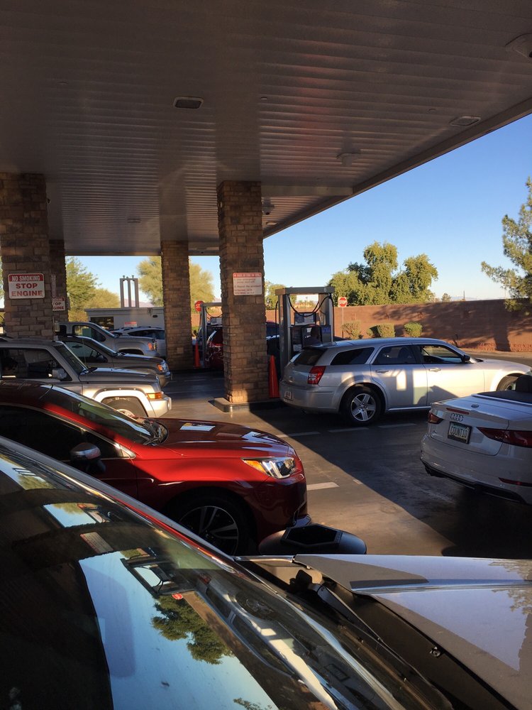 Cheaper gas but long lines. They need to add more pumps.