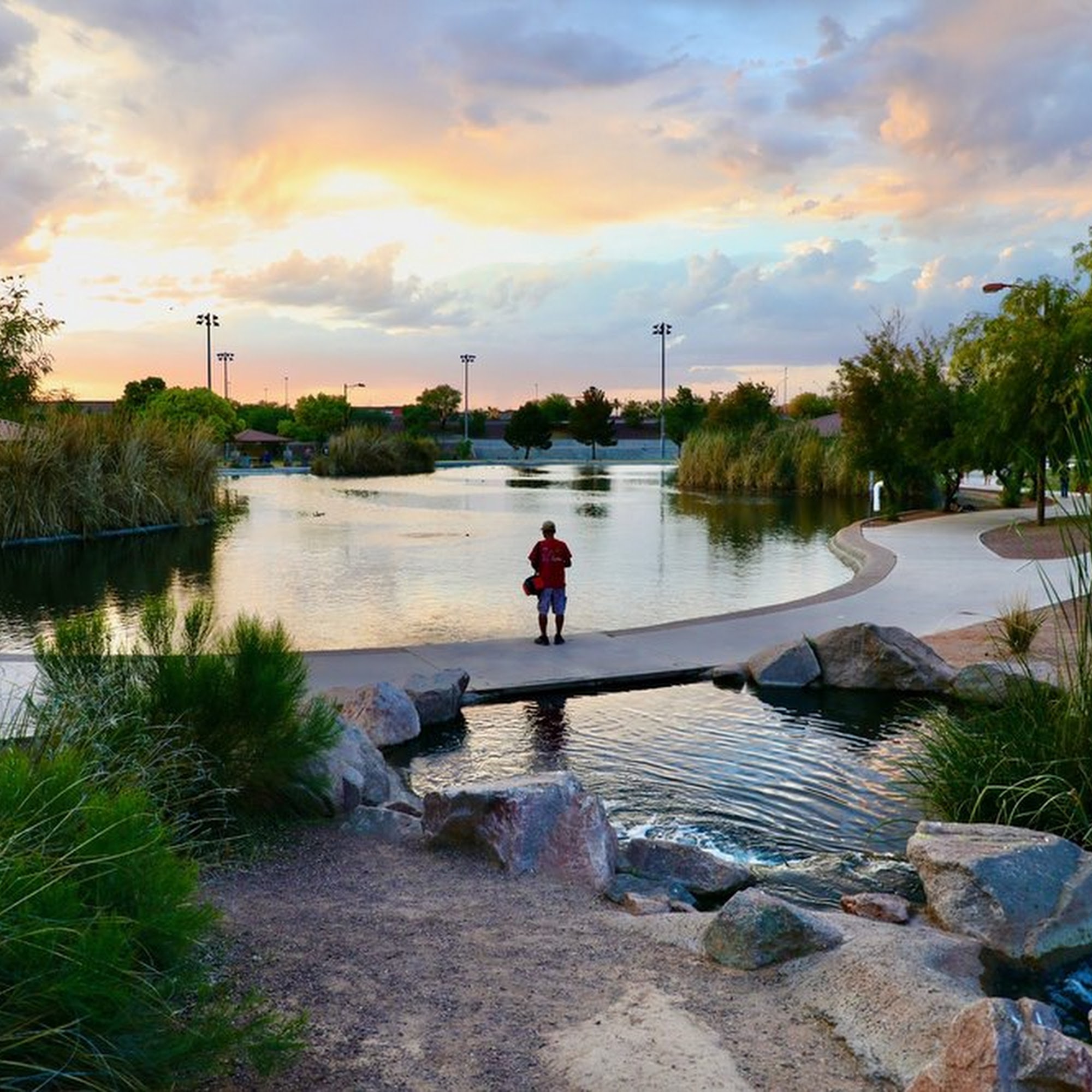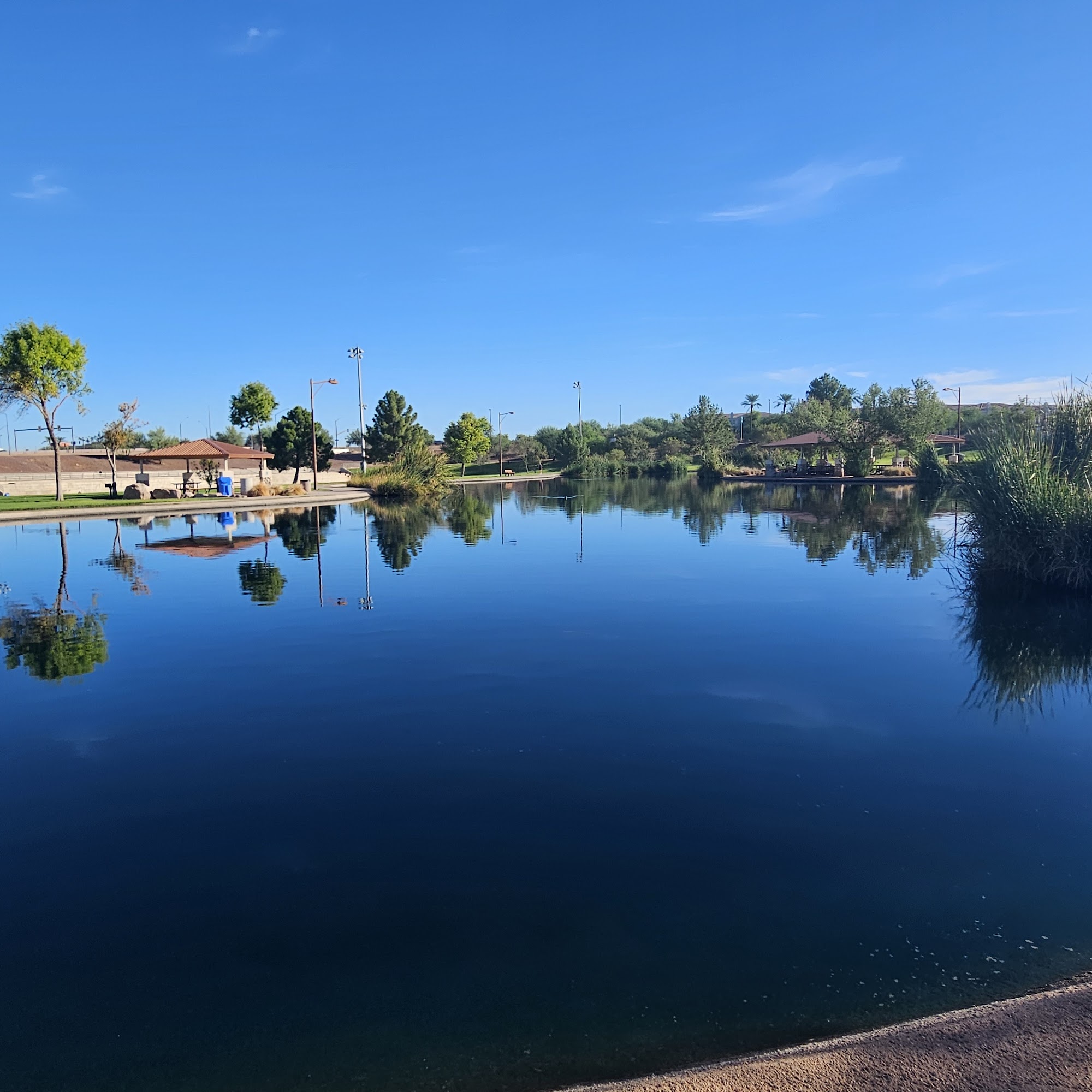 Discovery District Park is a large park with so much room and so much to do. It is a great place to take the whole family. It has large areas for kids' sports, including ball fields, basketball courts, and a football field. The kids' playground is very nice with newer equipment, featuring a large main play structure, climbing rocks, and fun climbing features. The park is very clean with clean, handicap-accessible bathrooms located close to the playground. There are trails around the ponds which are great for spotting birds, though the pond sometimes smells bad. It is a beautiful, simple park that feels safe and is a good spot or party spot. Some note a wish for more benches near the playground.