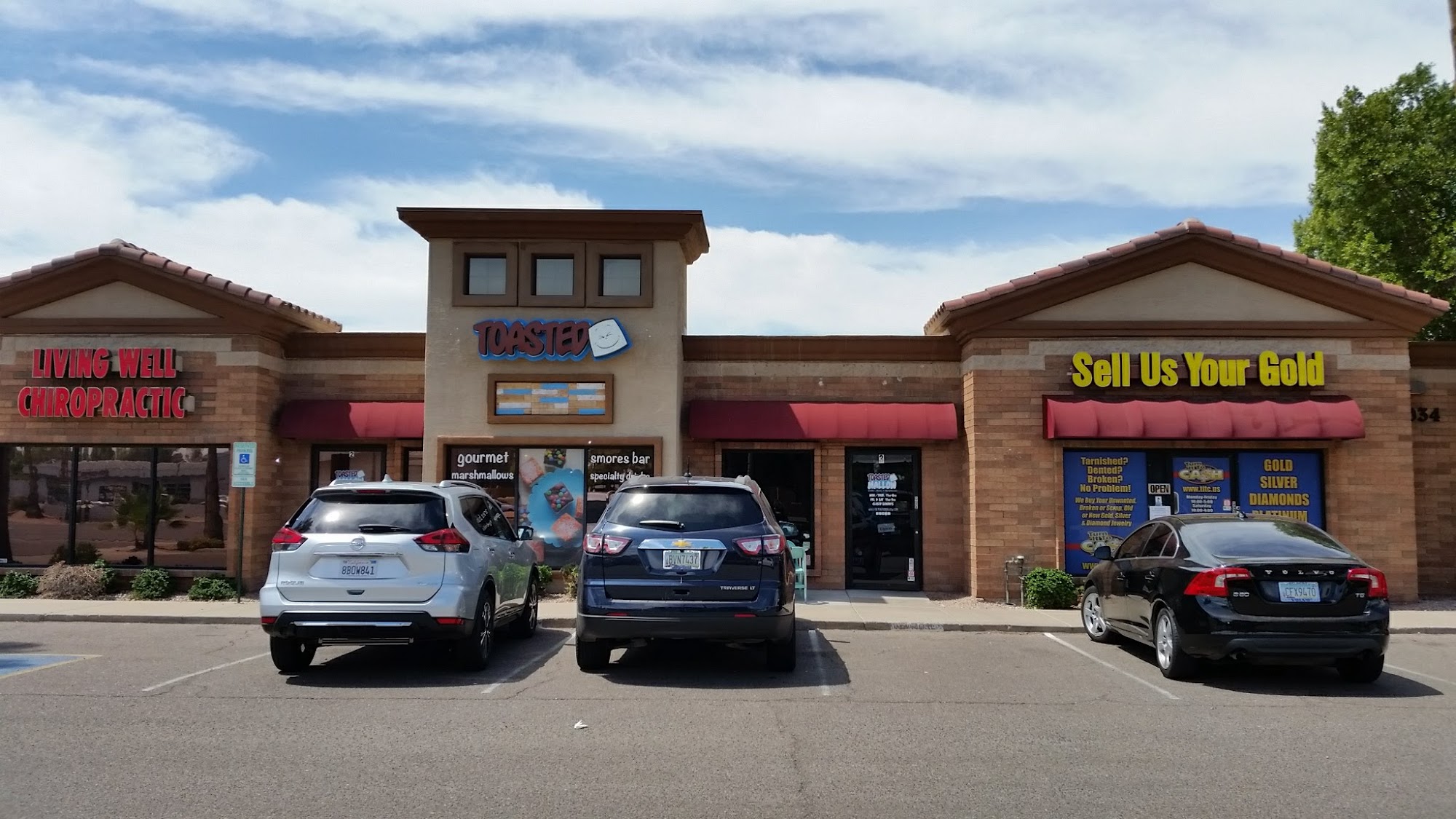 Gilbert Encinas Plaza is a medium-sized, horizontal layout shopping area with accessible parking and ramps. It features a variety of businesses, including a gym, martial arts studio, hair salon, auto shop, and eateries like The Toasted Mallow. While not very aesthetically pleasing and sometimes busy, the plaza offers diverse options for visitors. It also has an adult shop, making it a place with something for everyone's taste, located just a short drive from Downtown Gilbert.
