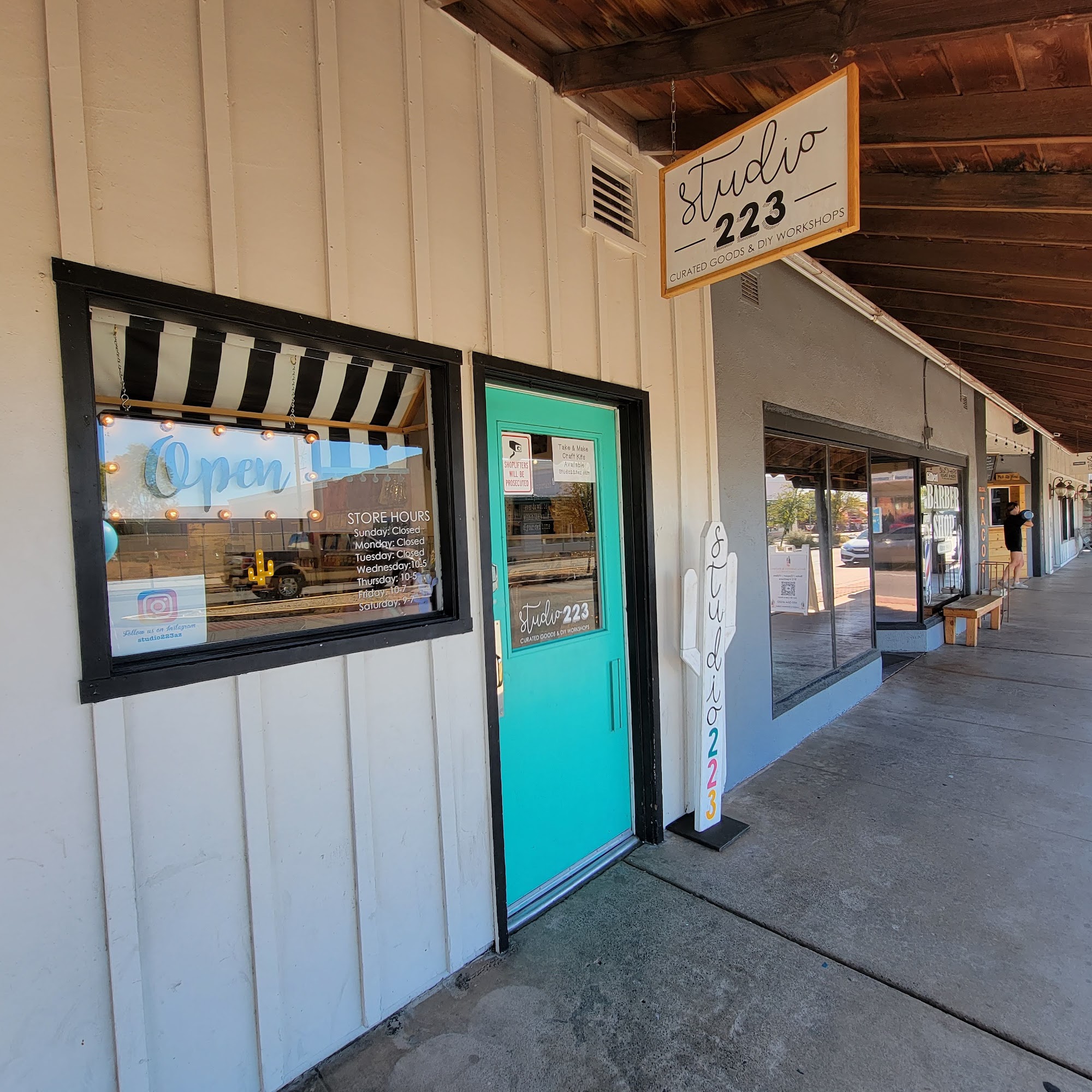 Studio 223 is a local business that sells handmade goods and offers DIY workshops, private parties, and kids' birthday parties. Customers describe it as a "must-visit" with a "cute and kind" staff, a "nice selection of local crafts and goods," and "the best Gilbert-themed enamel pins." The owner is praised for being "so kind and helpful" and accommodating for events like employee holiday parties. Customers enjoy the different types of workshops offered and the opportunity to paint complimentary ornaments during small business events. Overall, Studio 223 is a highly recommended small business that provides a fun and engaging shopping and workshop experience.