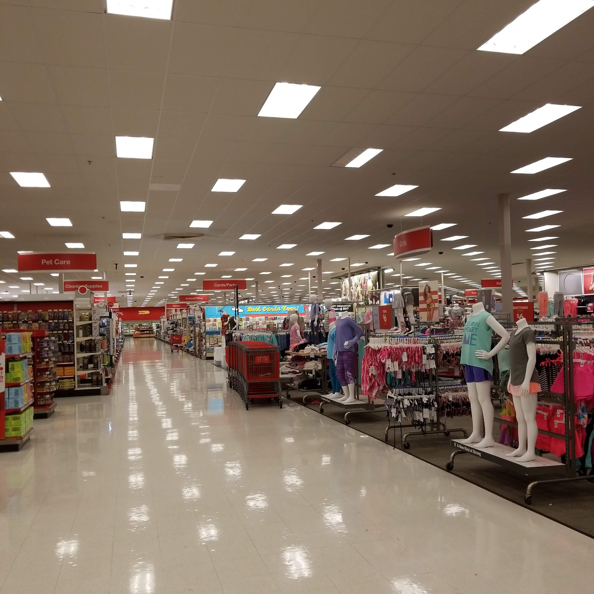 Target offers a mix of shopping experiences with a clean and organized environment. Customers appreciate the extensive candy selection and unique gift items. The store features a variety of categories, including toys and seasonal decorations, contributing to a pleasant atmosphere enhanced by themed music. However, some shoppers note that clothing and shoe options can be limited and that the checkout process may be slow, often with only self-checkout available. While some reviews highlight issues with empty shelves and limited sizes, others praise the helpful staff and efficient service. Overall, Target remains a traditional American store with groceries, electronics, and more, making it a convenient choice for many shoppers.