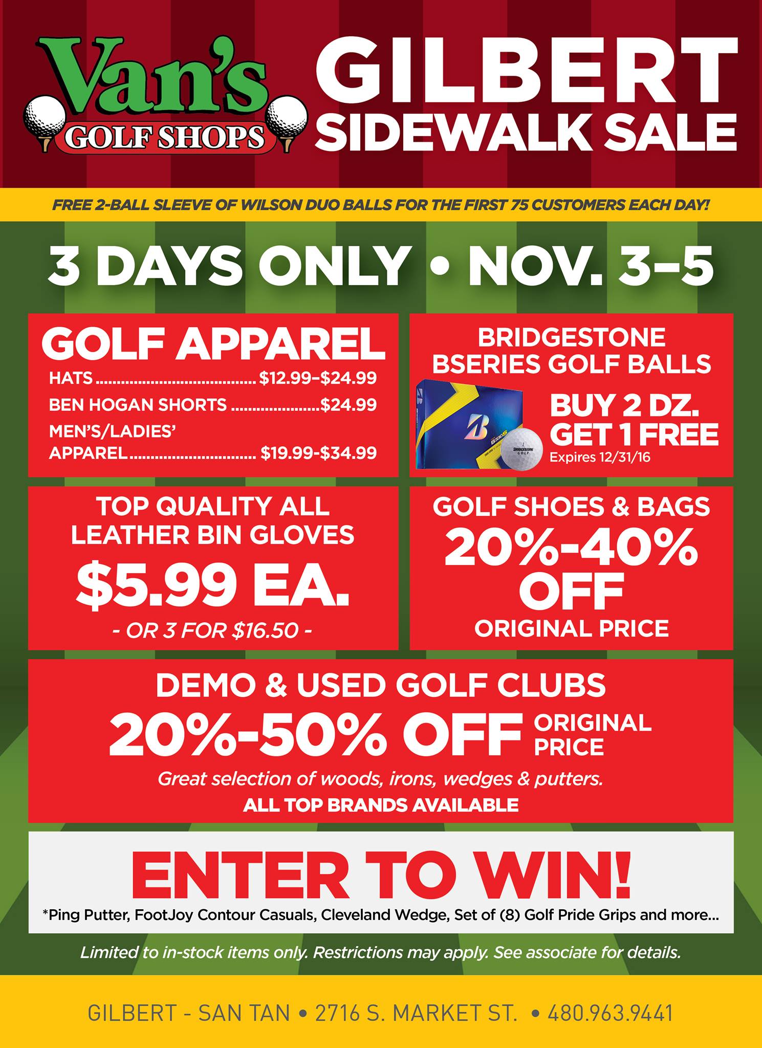 The Van's Golf Shops, known as one of the first golf retailers in the country has been serving Golfer since 1963. Our unprecedented service, exclusive 90-Day Satisfaction Guarantee, and Custom Club fitting is the cornerstone of our business and has made us the proven leader in golf retail throughout the Southwest. We look forward to servicing your golfing needs!