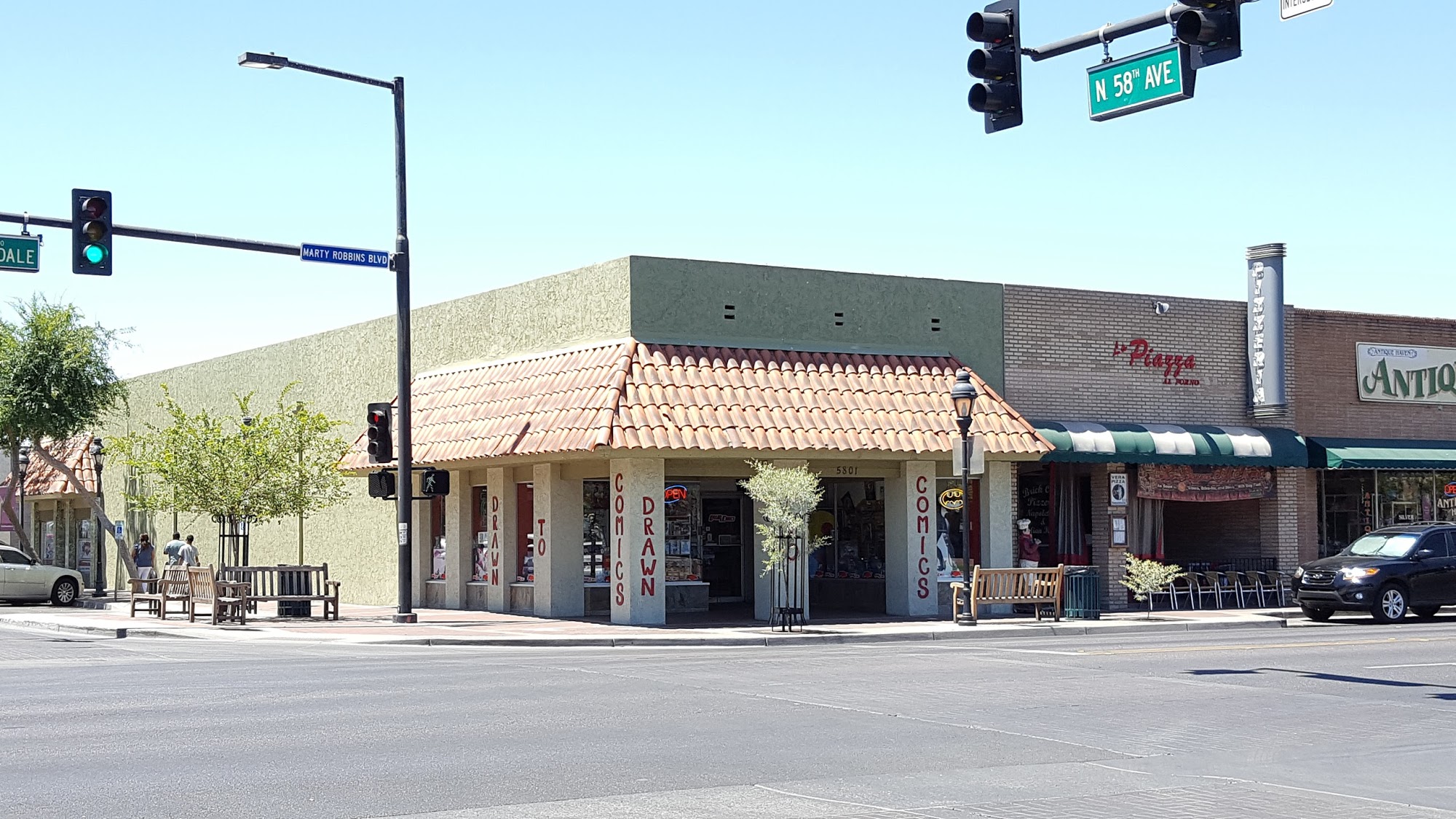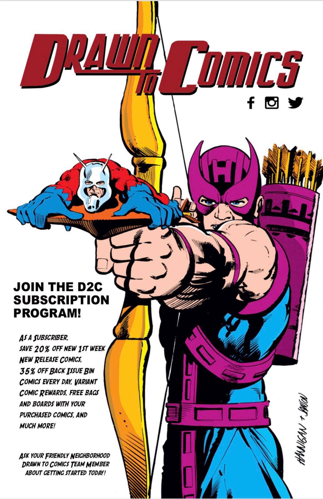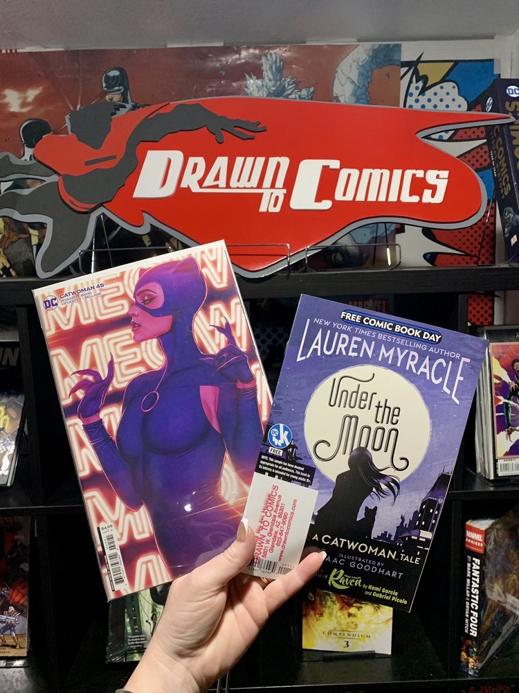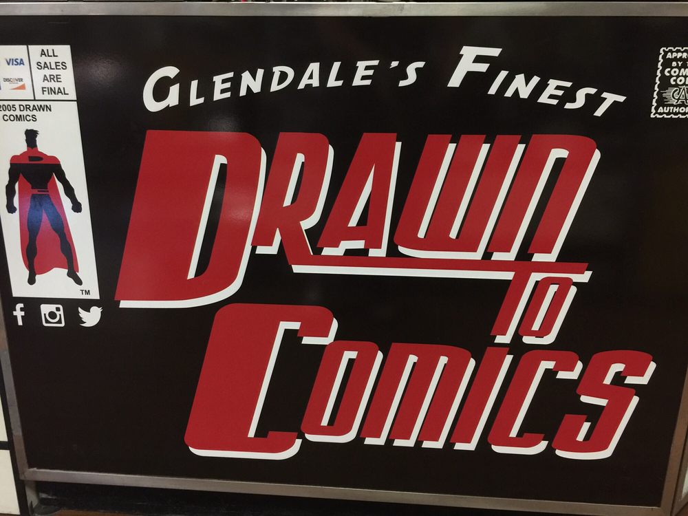 Drawn To Comics is a fantastic shop in downtown Glendale, a must stop for fans of all ages. It is fun for the kids and the big kid at heart. The shop has an excellent product selection, from the latest new issues to lots of great back issues, as well as action figures and collectibles. Comics are in bags with boards for stability. The second level is great with all the figures. The staff provides outstanding, friendly, and super helpful customer service; they are super nice, super informative, and dedicated. Their subscription service and rewards program are great. It is an awesome place with a wonderful community feel.