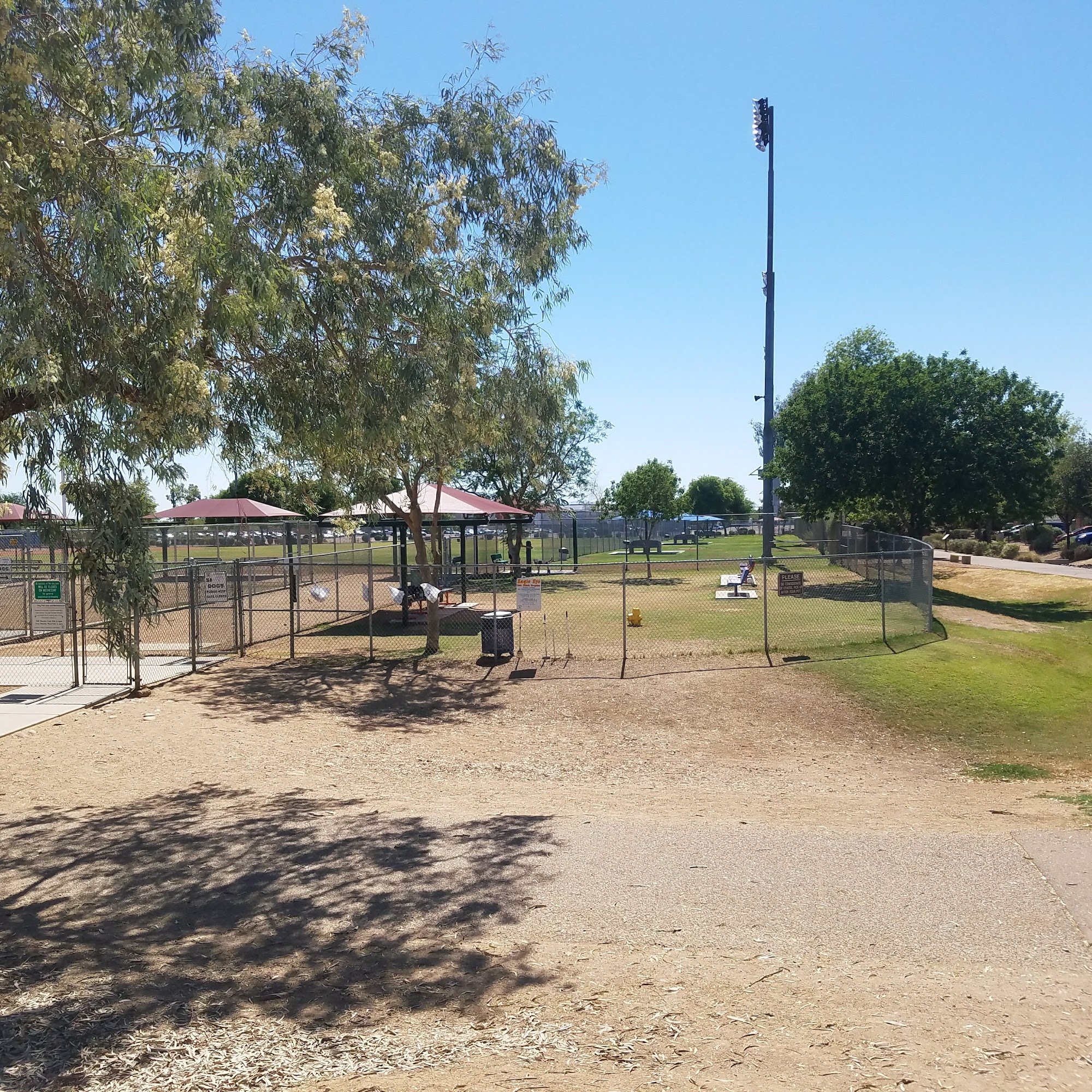 Nice friendly dog park with plenty of shade and space for dogs to run and play.
