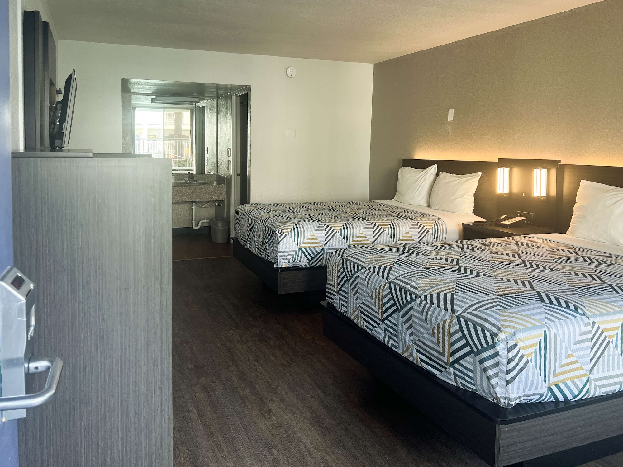 It’s the only inclosed motel 6 I’ve stayed at. It’s actually very nice and very quiet. No funny business or craziness at the motel that I saw. This motel 6 tops them all.