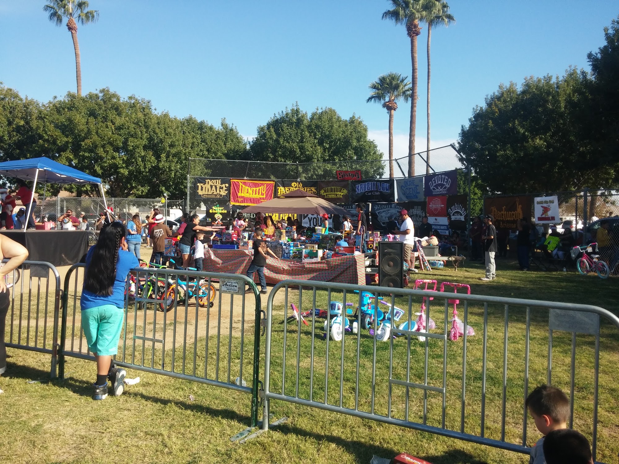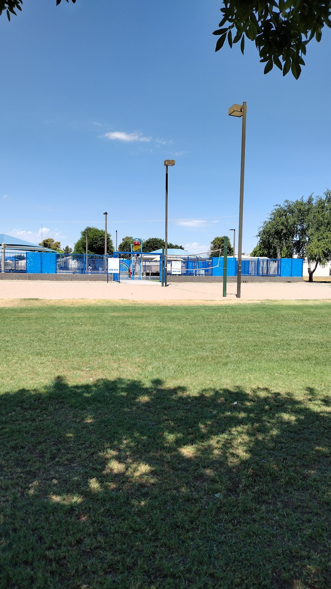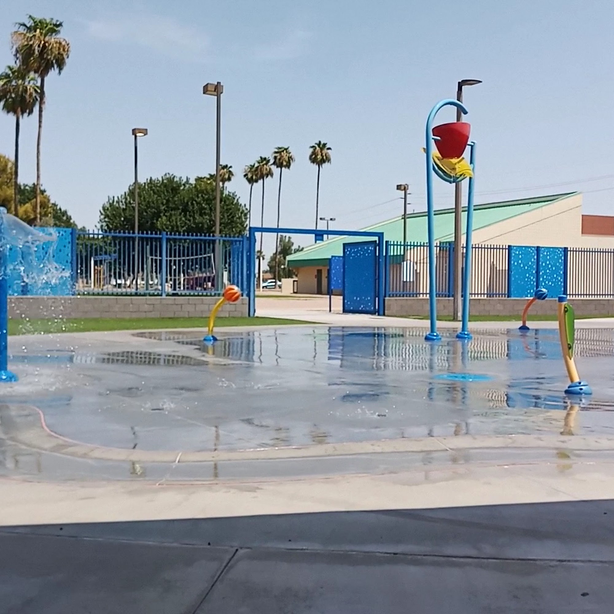 O'Neil Park is a very nice park with a lot to do. It features a fun splash pad and water features for kids, though the floor can get hot. There are two playgrounds, one for little kids and another for older kids, with classics and plenty of space. The wide open park includes a big green field, basketball courts, tennis courts, a soccer field, and a pavilion. It has beautiful, massive historic trees and several shady picnic areas next to a romantic lake. The rec center is a plus. However, the restrooms are often nasty and mostly locked, with only one open sometimes. The park is in the middle of a rough neighborhood with some Riff Raff locals, but it is pleasant during the day and police come often. It is leash-only for dogs, with a small fenced area.