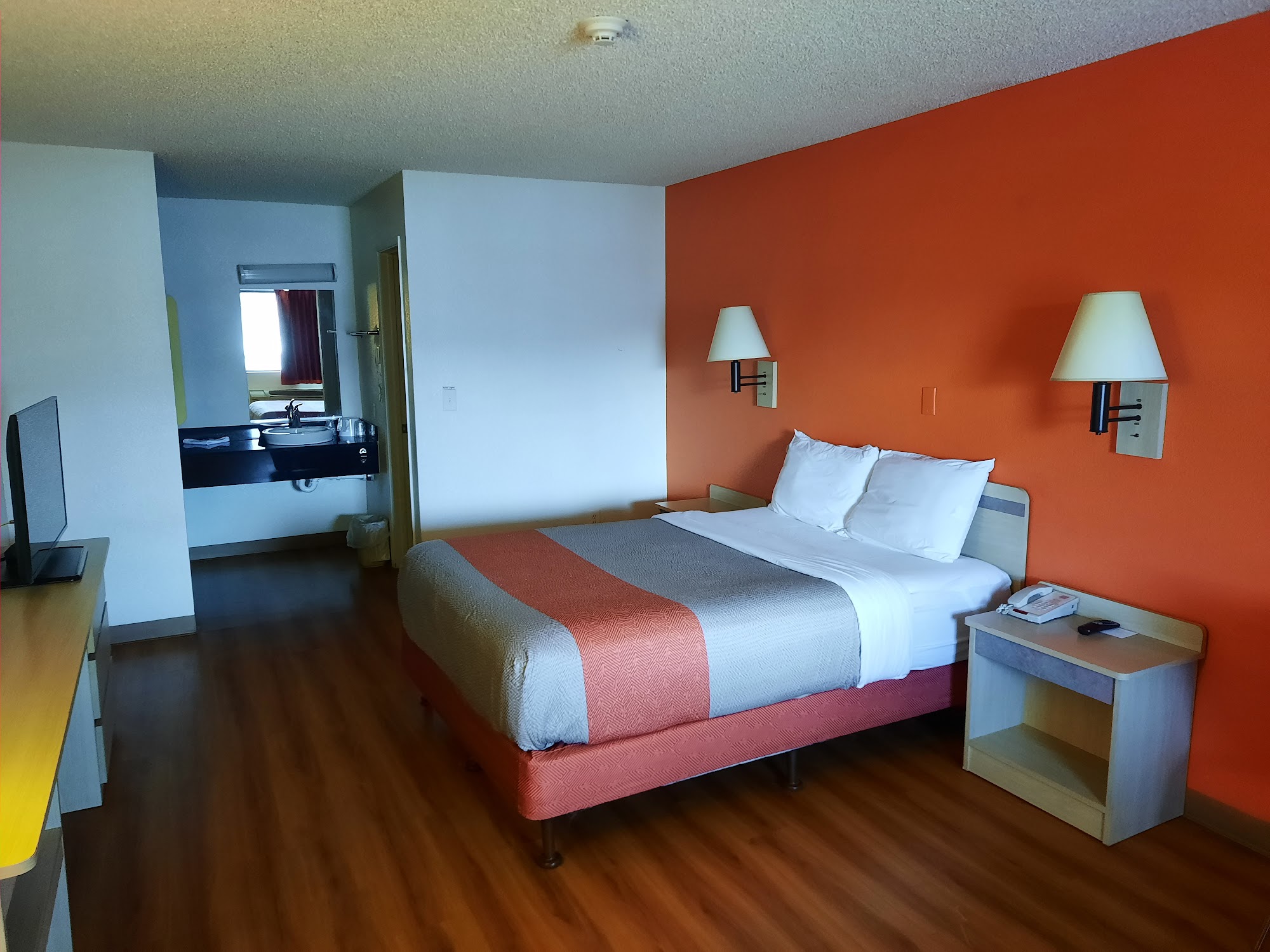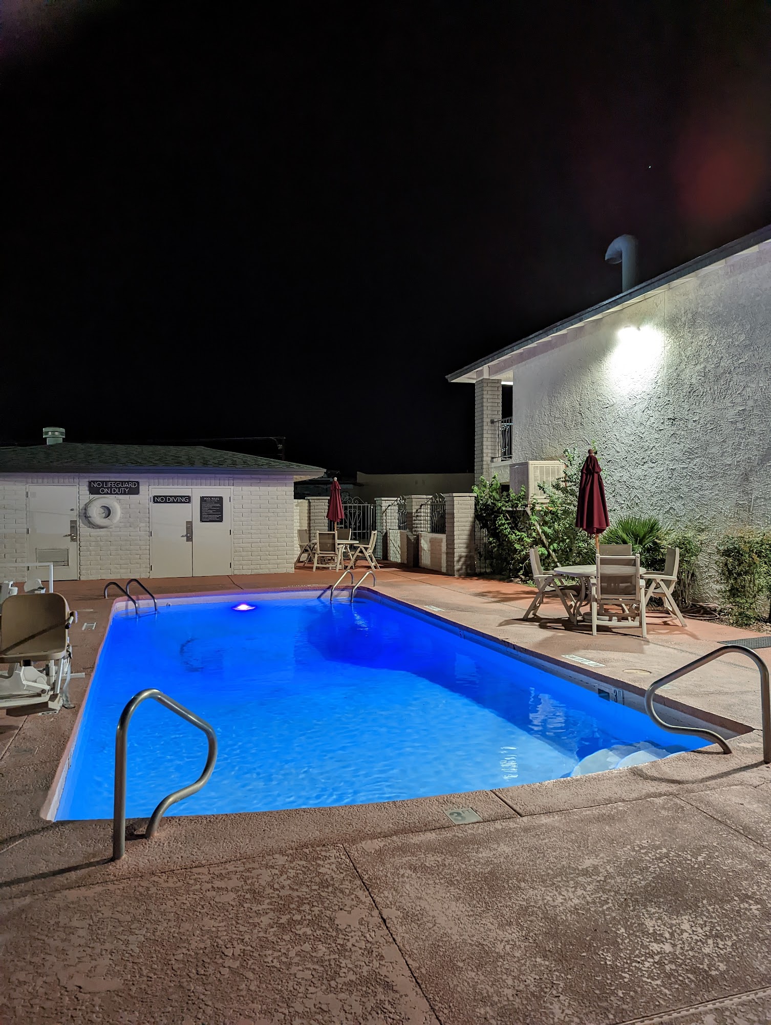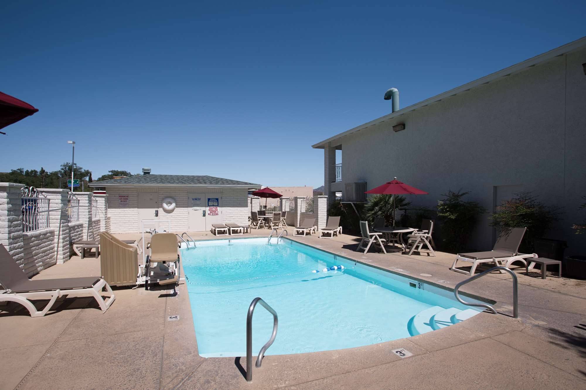 Motel 6 Kingman, AZ - Route 66 West offers an affordable and convenient stay for travelers, especially those with dogs, as pets stay for free. The motel features spacious and clean rooms with comfortable beds, although some guests noted the absence of amenities like fridges, microwaves, and coffee makers. The front desk staff is friendly and accommodating, helping guests with room preferences and providing a professional service. The property includes a large parking area suitable for bigger vehicles and semi-trucks, which is a plus for many visitors. Guests appreciate the refreshing pool, especially after long days on the road. However, some reviews mention that the motel could benefit from a good cleaning and remodeling, as signs of wear and tear are apparent in some rooms. While the area can be extremely hot during summer, the efficient AC systems help maintain comfort. Overall, Motel 6 Kingman is seen as a good value for those seeking basic accommodations.