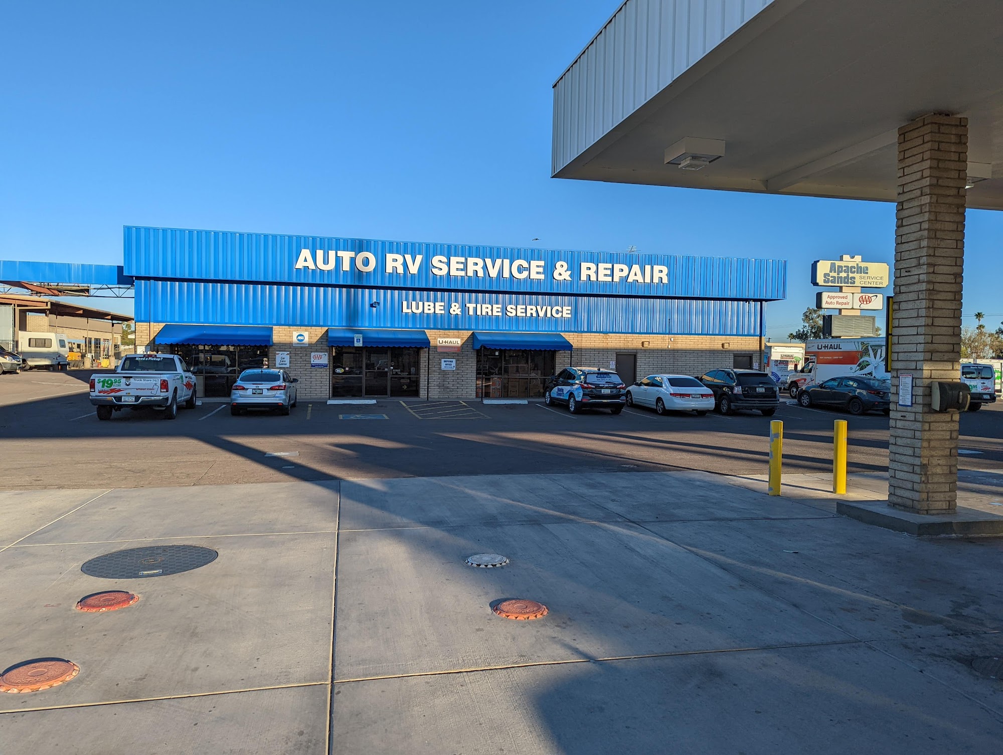 Apache Sands Service Center is a large automotive repair shop serving the East Valley since 1956. It provides high quality services for cars, light trucks, and recreational vehicles, including tire sales and repair, maintenance, air conditioning work, and wheel alignments. The staff is extremely friendly, helpful, professional, and knowledgeable. Reviews highlight great service and the team's ability to complete repairs in a short time frame, including for urgent situations and planned vacations. The business is noted for its strong family values and dedication to customer service, with specific praise for efficient towing assistance and fantastic support.