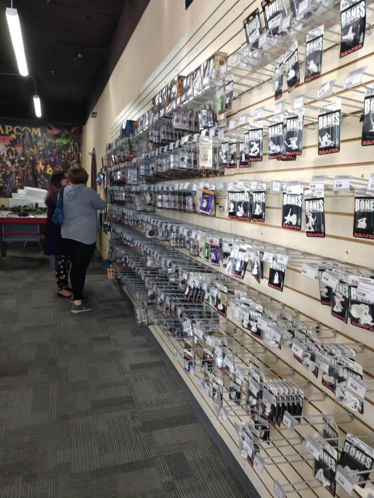 Friendly staff, good area for MTG, Warhammer, great selection of minis. I have been visiting this store since it opened, and watched the store adjust to demand. As a pen and paper gamer they have the books, mats, dice and figs that I need in stock most of the time. They are not the cheapest, but if that is all you want,... read full comment