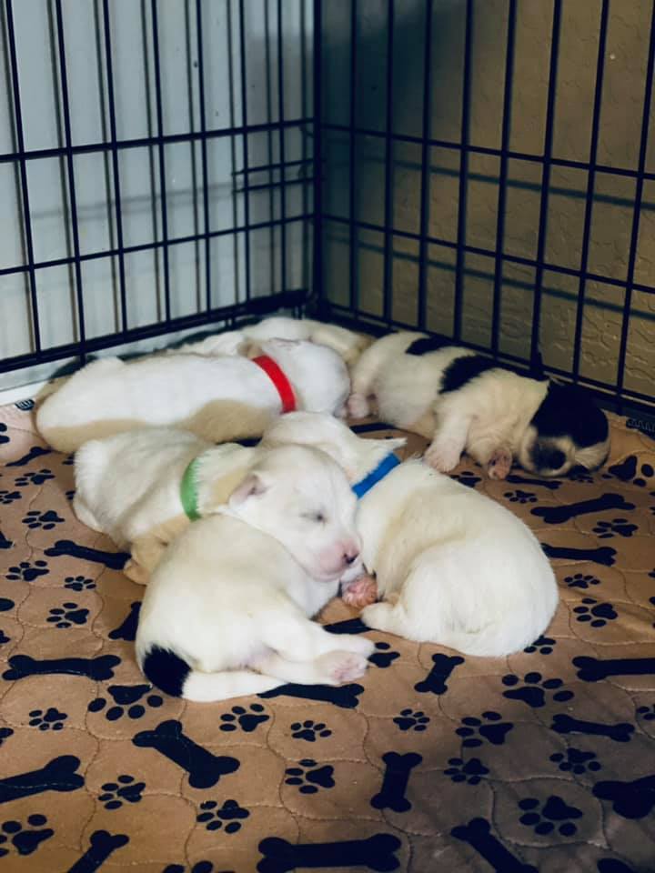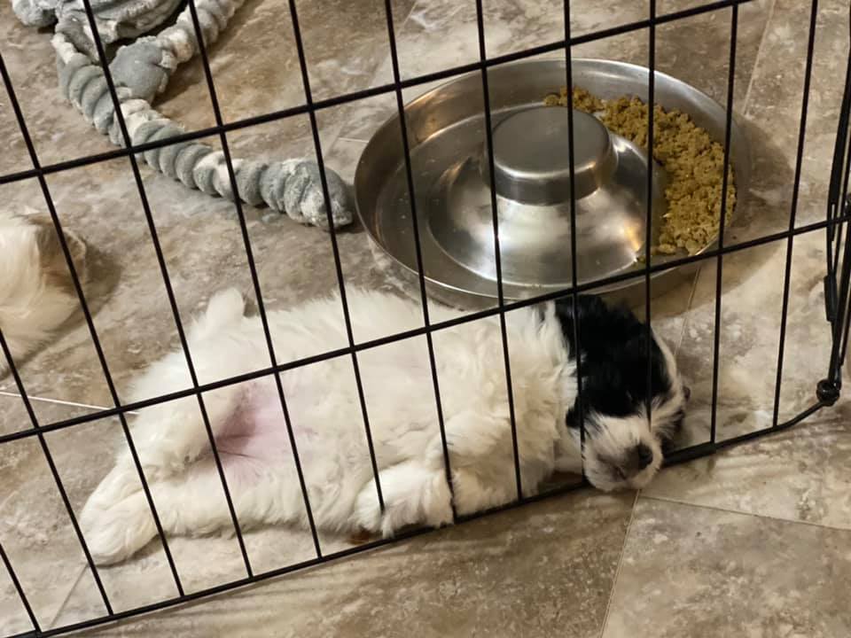 Love our new baby. Our puppy nanny flew him to us in Chicago at the end of May. He is the best puppy - adorable, smart and loving. We are loving his personality and cuddles - thanks Cathy and Mike