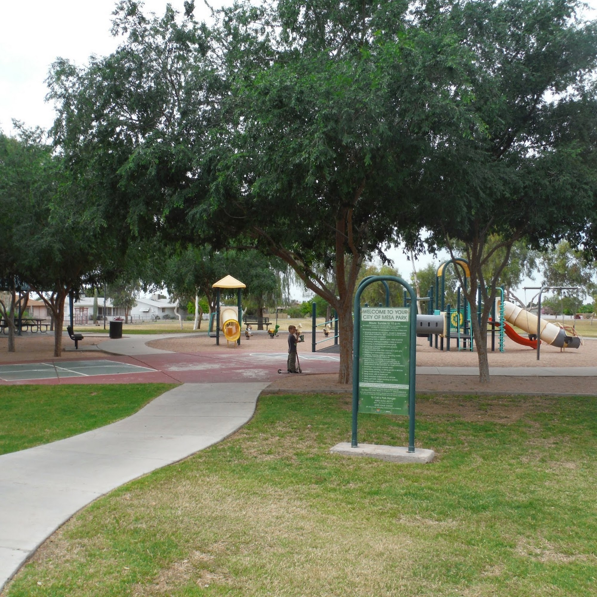 I love to take my pups there during the the times the children aren't there so they can play. It's a great place for your kids too. Update: The park is even better. The Mesa Police put a surveillance camera up so it's seems to keep the trash out. Took my Boyz the other day and they had a blast.
