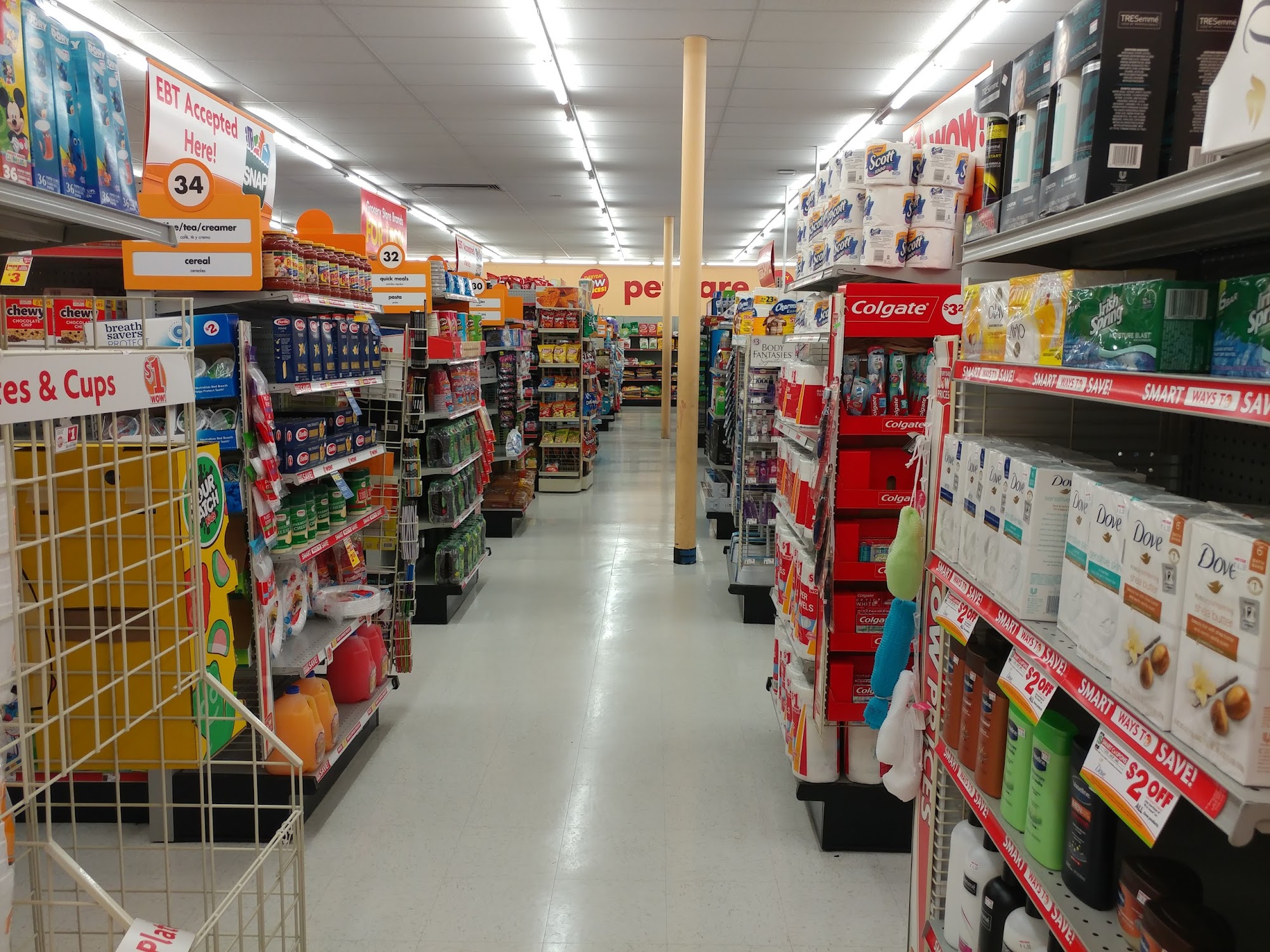 This Family Dollar store provides an easy in and out shopping experience and a great atmosphere. The staff handles difficult situations well. Some customers note the store feels cramped, with aisles pushed together, making it hard to walk through. Shoppers may not always find every specific item, but overall it is considered a good shopping experience that can save money.
