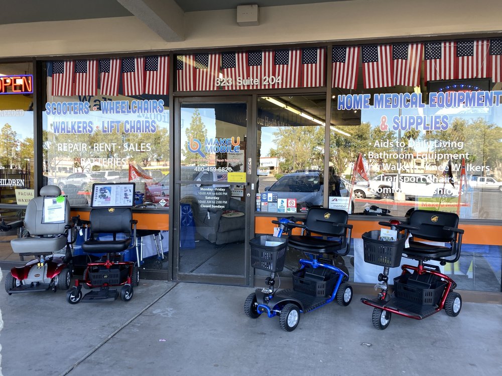Make U Mobile provides DME Mobility equipment, Sales, Rentals and Repair services In Home or In Store. Power Chairs, Scooters, Wheelchairs, Walkers, Rollators .. Home Medical Equipment Supplies.