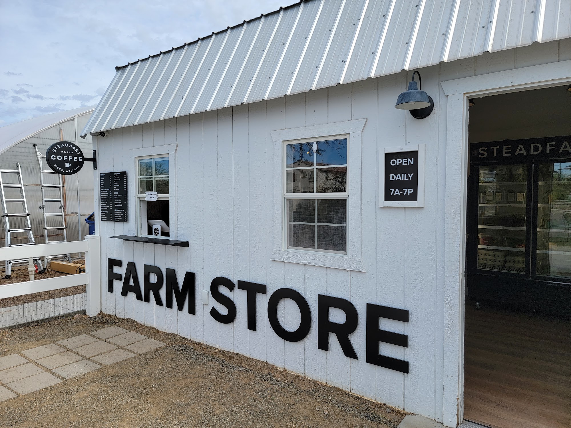 Cutest farmhouse coffee stand, we love all the creative latte flavors and variety of local foods