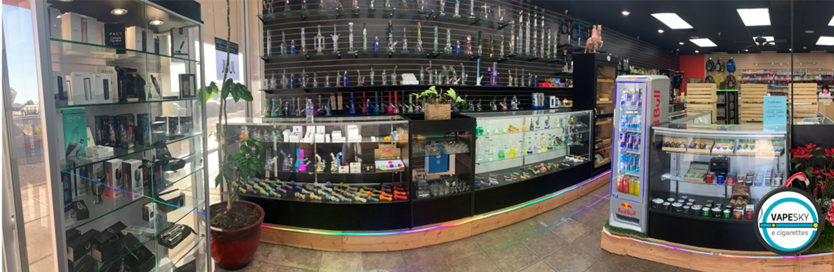 VapeSky focuses on excellence and quality products with exceptional customer service. The store carries thousands of top‑trending items, including a large selection of E‑Juice, Salt Nicotine Juice, vaporizer devices and starter kits, disposable vapes, hand‑blown glass water pipes, and more. Customers describe the staff as friendly, helpful, and knowledgeable. Many shoppers note that the shop is a regular shop in the East Valley, worth a drive for its wide selection and friendly service. The owners are there and are described as super cute and friendly. Reviewers say the store is absolutely wonderful, highly recommended, and the best vape store they have found in awhile. The staff helps find exactly what is needed and assists with setting up devices.
