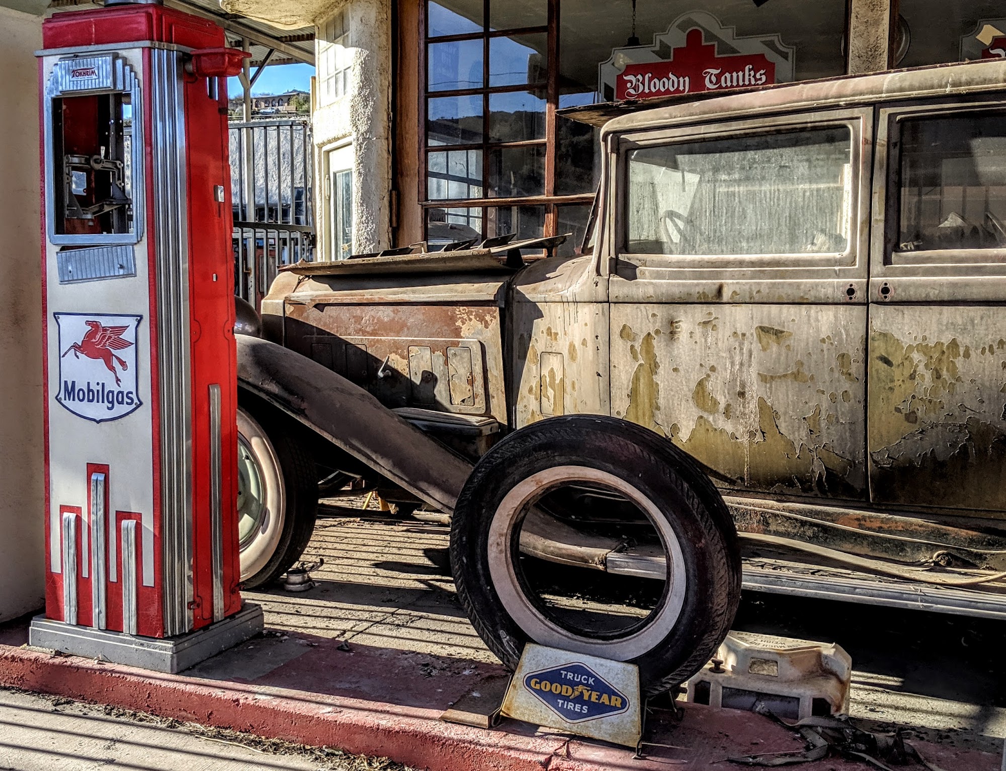 This business was closed as I passed through Miami AZ but I loved the vintage truck and the very old bus.