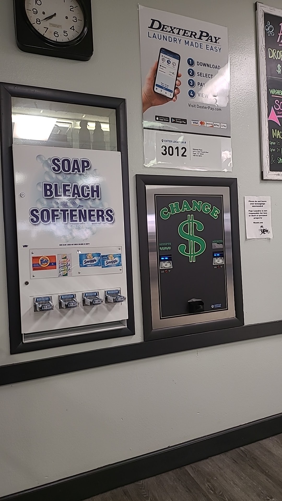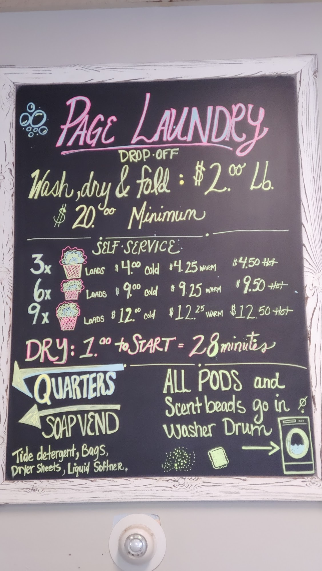 Page Laundry offers a clean and modern environment for laundry needs, featuring new machines and an immaculately cleaned restroom. Customers appreciate the friendly service from staff, who are always ready to assist. The facility includes plenty of parking and a convenient online payment option, eliminating the hassle of using quarters. Washing costs range from $5 to $10 per load, with large washers that clean effectively. Dryers start at one dollar for 20 minutes, with additional time available for a quarter. Although the business does not have an ATM, the pleasant atmosphere, availability of Wi-Fi, and distribution of washing products make it a recommended choice for those in need of laundry services. Overall, Page Laundry is praised for its excellent service and well-maintained facilities.