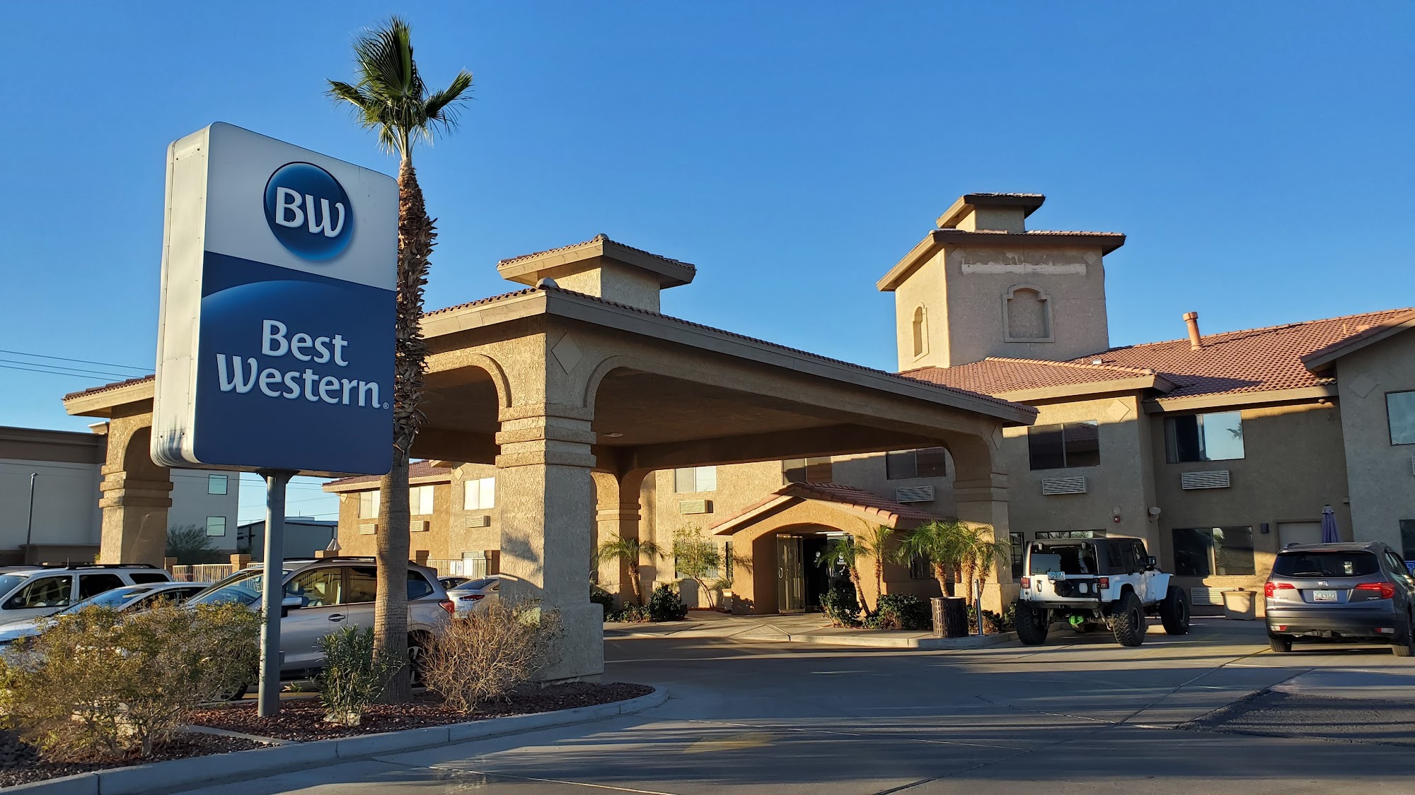 Best Western Parker is a clean and comfortable hotel located in the quiet desert town of Parker. Guests find the rooms to be spacious, well-maintained, and equipped with amenities such as a fridge, microwave, and effective air conditioning. The hotel offers good value for money, with fair prices considering the amenities and location. The staff is consistently praised for being friendly, professional, and helpful, making guests feel welcomed and well cared for. The breakfast receives mixed reviews—while some find it satisfactory, others consider it average compared to standards in other US hotels. The hotel features a pool that, during colder months, can be refreshing or shaded, and is unheated. Parking is plentiful and easy, with options for larger vehicles behind the hotel. Its convenient location makes it a good pass-through stop, with nearby restaurants within walking distance. While the surrounding property may not be impressive, the overall experience is positive, especially for travelers seeking a quiet, clean, and friendly place to stay. Many guests express intentions to return, particularly in warmer seasons, valuing the friendly service and comfortable rooms that make for an enjoyable stay.