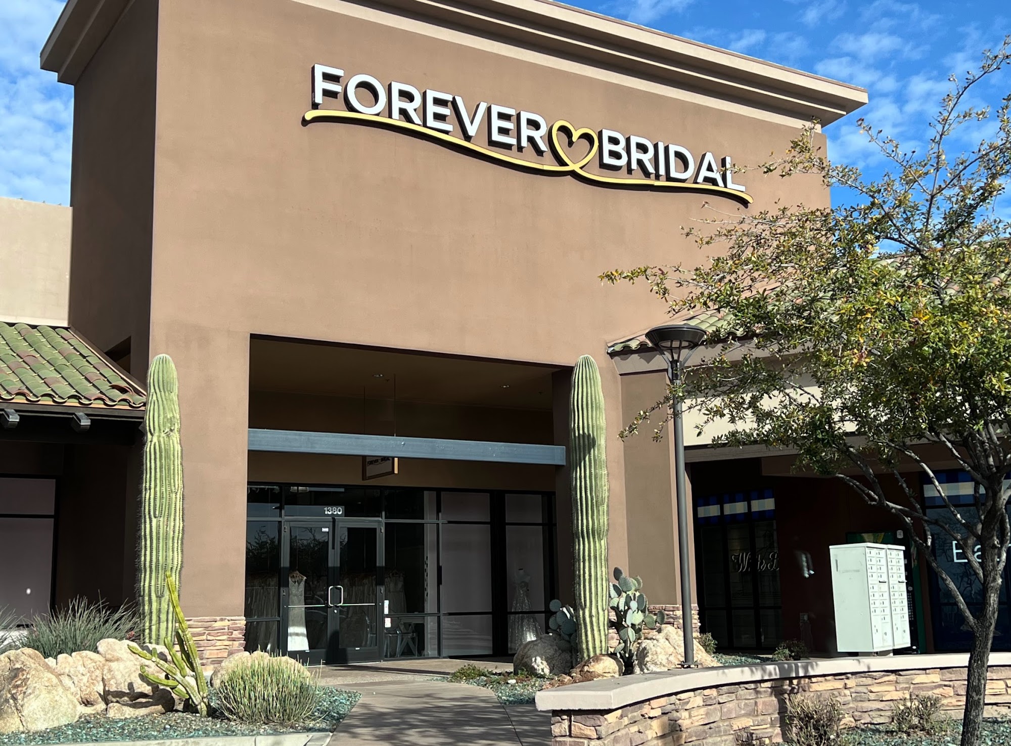 Hello! We are located in Peoria at the Lake Pleasant Towne Center. We offer wedding gowns, bridesmaid dresses, shoes and accessories from some of the greatest names in the bridal industry! Our main focus is to supply every bride with an experience that is unique and intimate to them. Our bridal stylists are dedicated to giving you the one on one time and attention you deserve and are passionate about making you look and feel gorgeous! Take a look at our website to ask questions, book an appointment, learn about our amazing team or check out our designers!