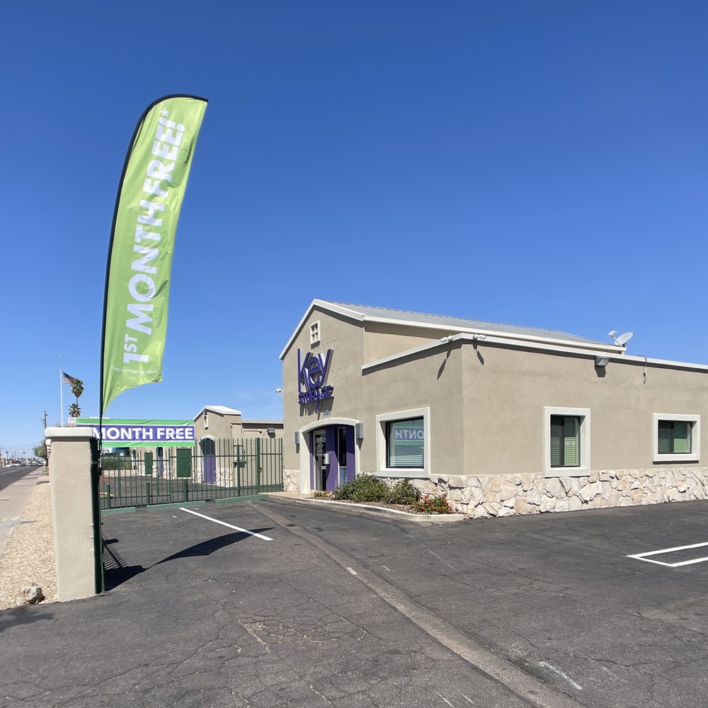 If you're looking for self storage in Phoenix, AZ, Key Storage - Indian School Road is your destination. Climate-controlled units protect your items from temperature extremes, and drive-up units with wide aisles provide easy access. Safe, uncovered vehicle, boat, and RV storage is always available, and, when you are ready to move, we have rental trucks as well as moving supplies. Your security is important to us. We offer a video surveillance system, along with electric gates with keypad access and perimeter fencing. You can access your storage 365 days a year, and we have flexible, monthly leasing. It’s easy to manage your account and make payments online. Don’t forget about our military discounts. Give us a call to reserve today!