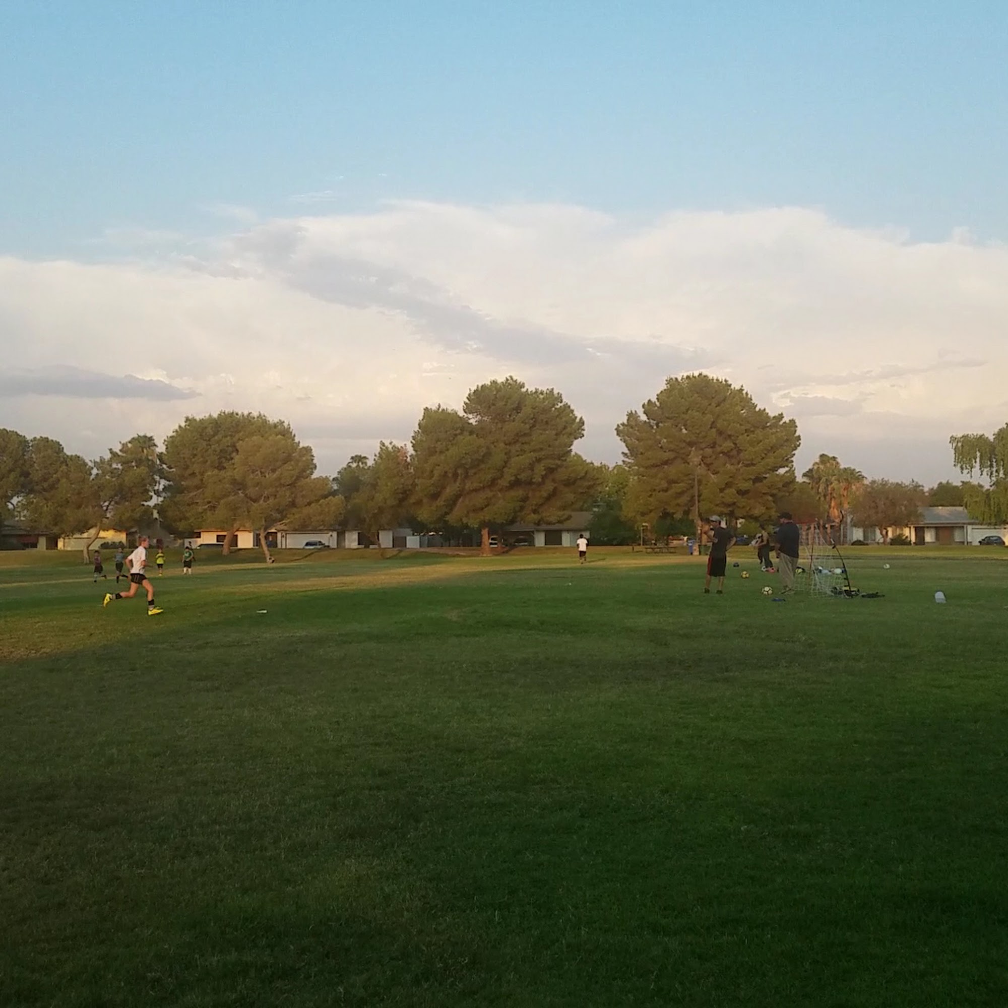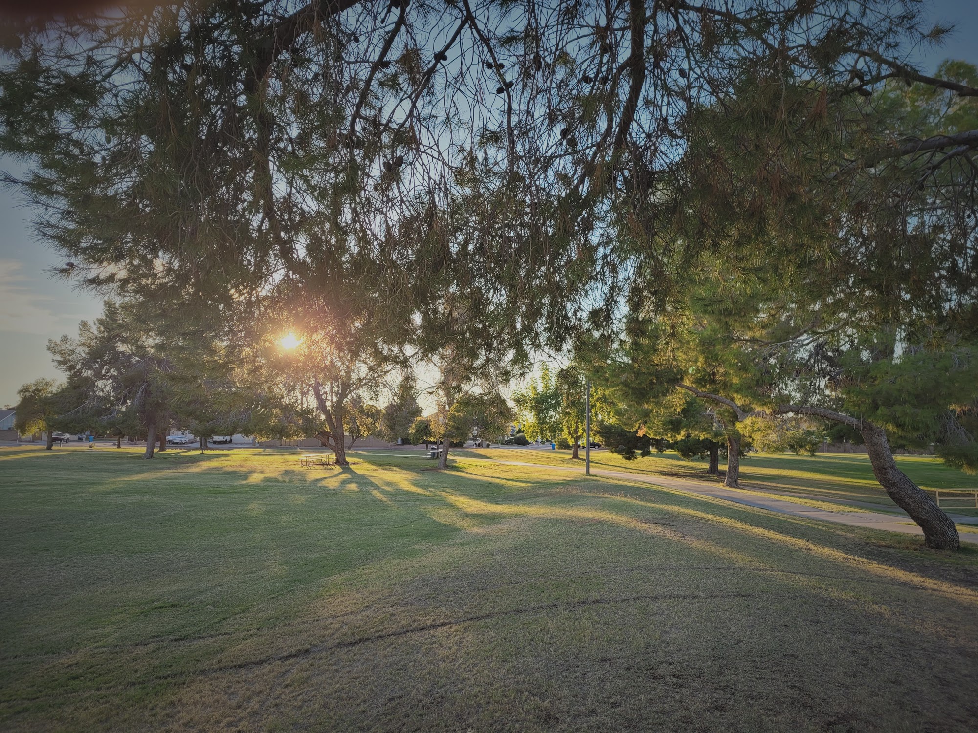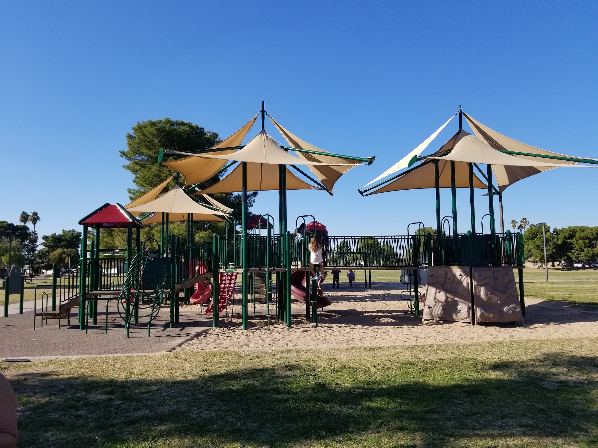 Acoma Park is a clean neighborhood park with a large grassy expanse and plenty of shade from trees and gazebos. It is a fantastic and safe place for families, offering a well-maintained playground great for children under 10. The playground features sand, swings, baby swings, basic climbing equipment, and two covered climbing gyms with a soft foam and sand ground. It is a very nice park with more families than other nearby parks and no homeless hanging out. The park is dog-friendly, with many people bringing their pets. It has picnic areas, though there are only three picnic tables and a need for more benches. A significant drawback is that there are no restrooms and the water fountains do not work. Other noted issues include some graffiti on the play structure and cigarette butts in the sand. Despite this, it is a highly recommended and worthwhile spot for a picnic or a day of outdoor fun.