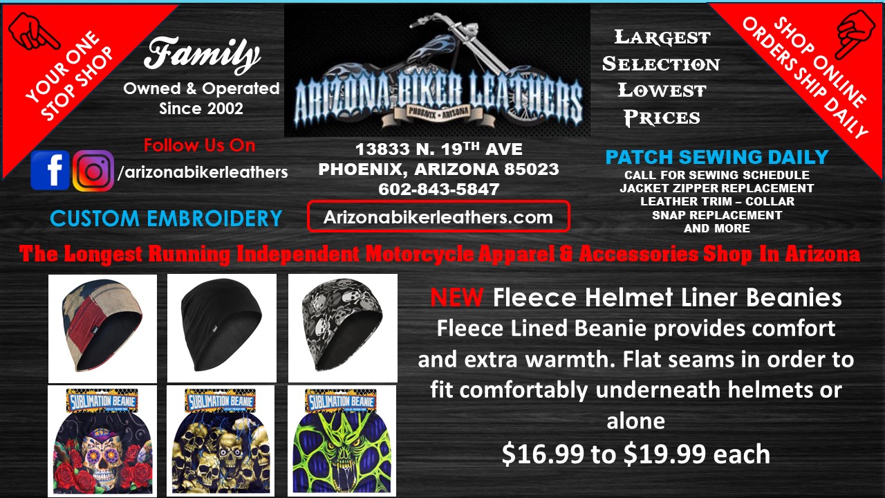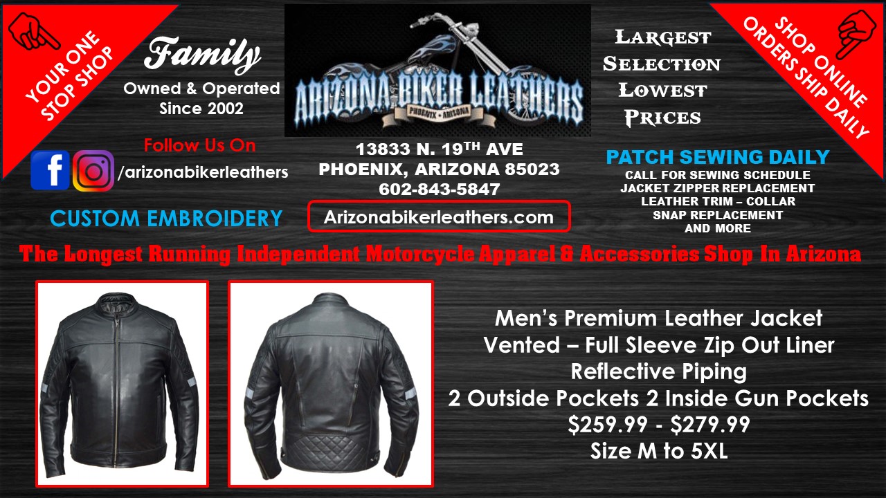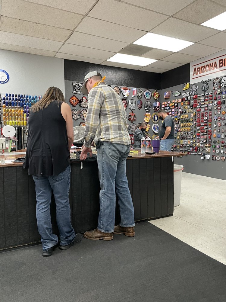 Arizona Biker Leathers LLC is a family owned and operated business with a great, friendly staff and a good selection. It offers the largest selection and lowest prices on motorcycle apparel and accessories, including jackets, vests, leathers, patches, and much more. The shop provides patch sewing while you wait and custom embroidery with no minimum order, all done in-store. The staff is super friendly and helpful, ensuring patches are placed exactly as desired. It is a highly recommended place for custom patches and leather work, known for amazing prices and a good overall experience.
