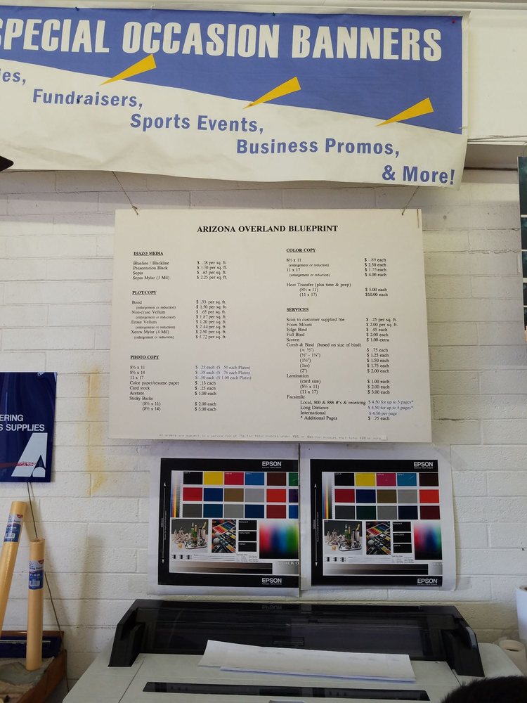 AZ Overland Blueprint is a locally owned and operated business that has been serving the Phoenix area for over 35 years. They primarily service the Construction industry, providing reliable and affordable printing solutions. Customers praise the business for its friendly staff, convenient location, and ability to handle a variety of printing needs, including scanning, copying, and plotting documents in black and white or color. In addition to their main printing services, the business also houses a small US Postal Service counter, making it a one-stop-shop for various printing and mailing needs. Reviewers highlight the business's competitive pricing, quick turnaround, and high-quality work, making it a trusted choice for personal and professional printing projects.