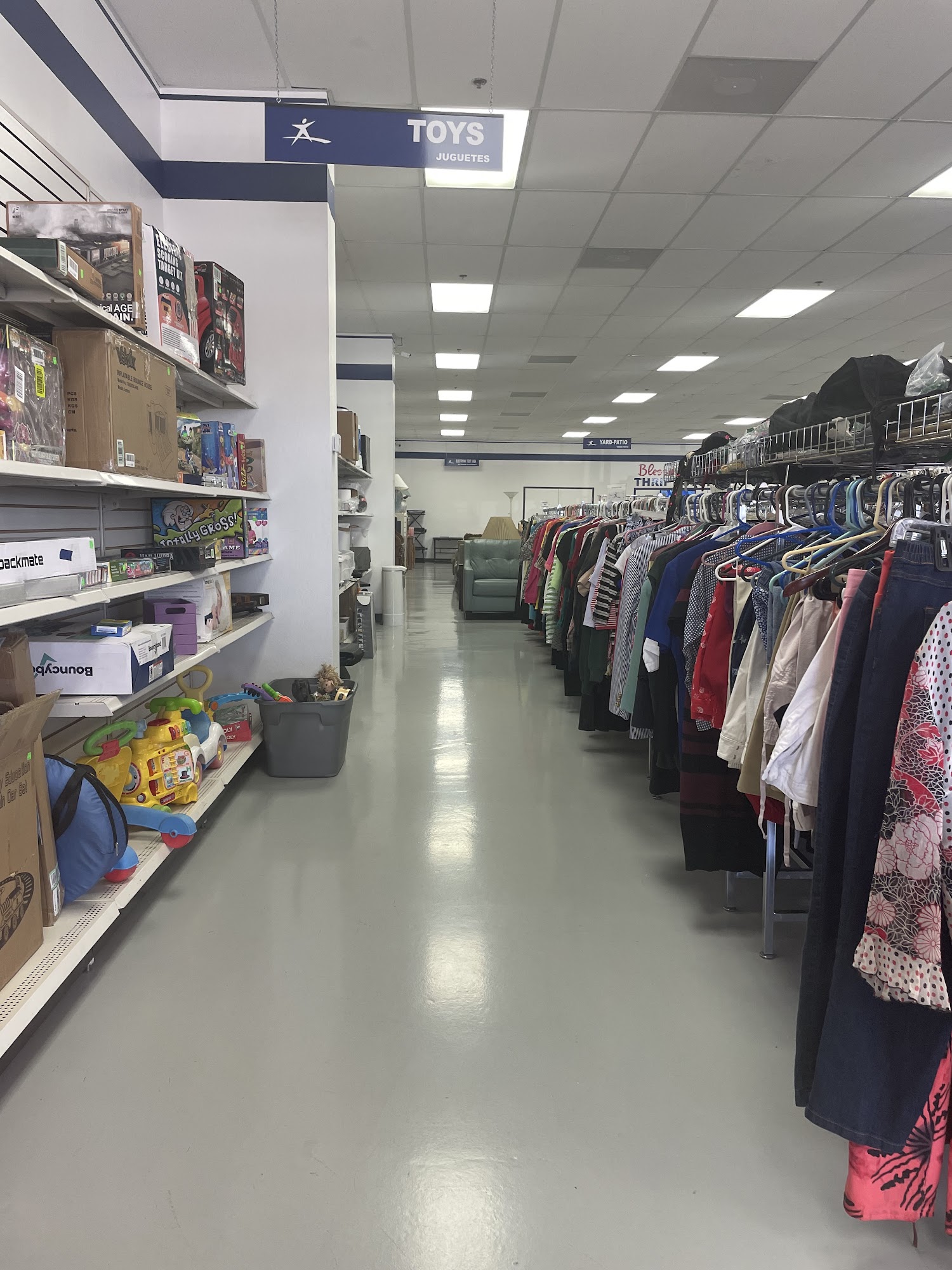 Went there today got one pair of brand new with tags basic black pair of shorts with two zipper pockets for price $7.50ยข and they had Christian music on yes ?? plus they help out the community / the teen challenge