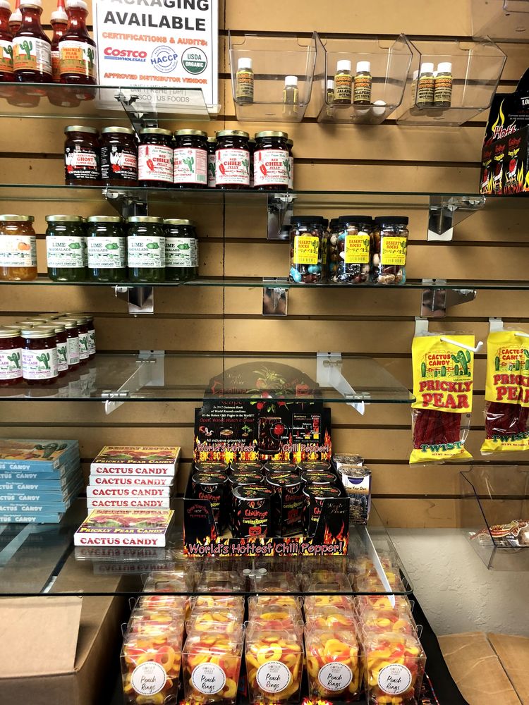 Cactus Candy Company is a highly regarded local business known for its great candy and taffy, along with fantastic customer service. Customers appreciate the friendly staff who make visitors feel welcome and part of the family. The store offers a wide variety of products, including cactus candy, jalapeño jelly, cactus jelly, hot sauces, and spices, all at affordable prices. Many reviews highlight the unique Arizona-themed gifts, such as the bright yellow T-shirts and scorpion lollipops, making it a popular destination for those wanting to bring home a special souvenir or gift. The store is small but well-stocked, with helpful staff ready to assist. Visitors mention the clean environment and the convenience of parking nearby, despite the store being located in an industrial zone without a visible sign. The cactus candy is described as melt-in-your-mouth and bursting with real flavor, with some calling it the best candy they've ever had. Overall, Cactus Candy Company is a go-to spot for unique, tasty treats and authentic Arizona gifts, well worth the drive for both locals and travelers.