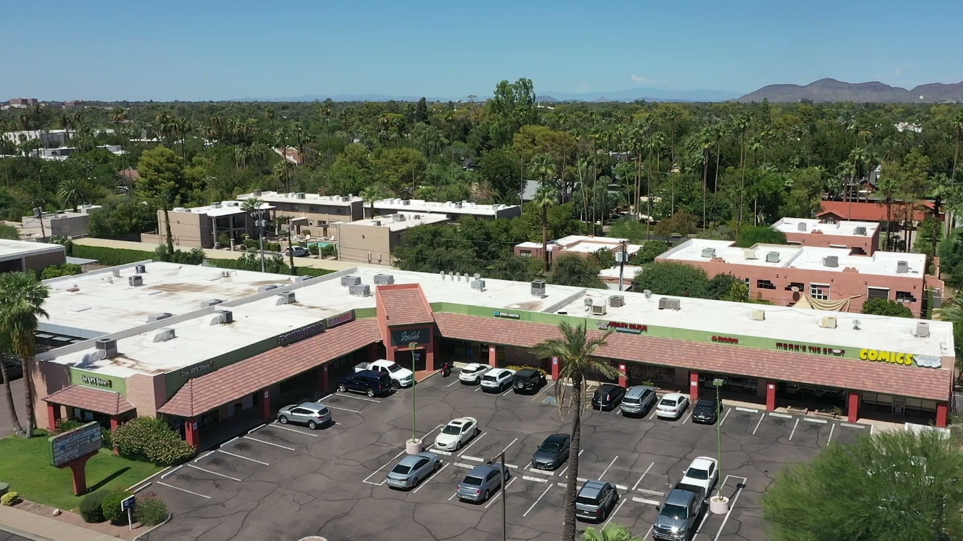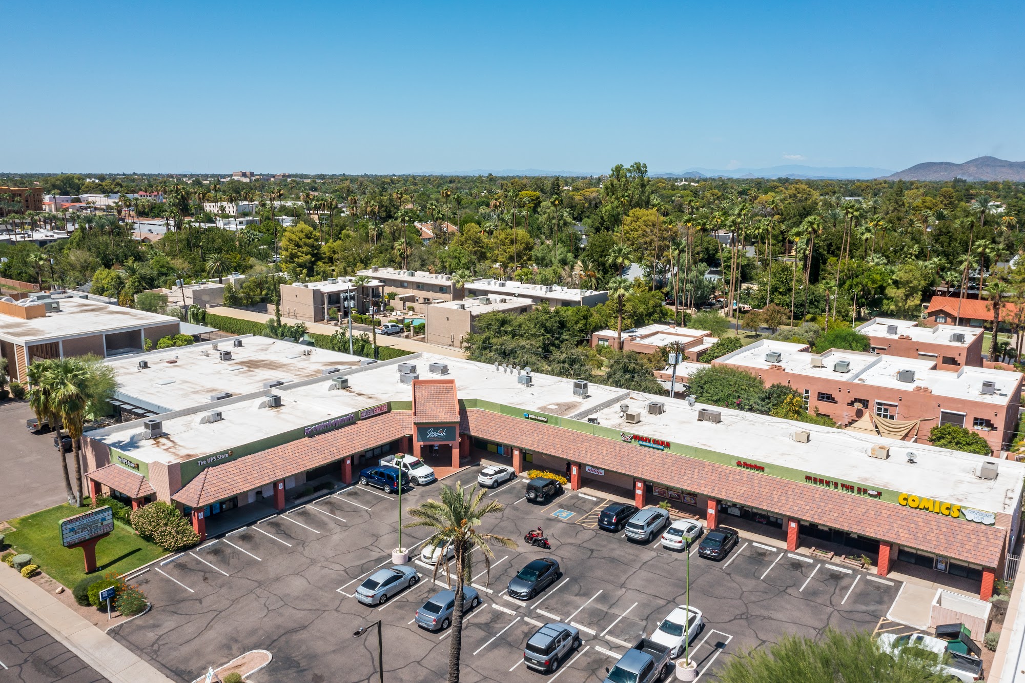 It is a cute plaza , the first turn after the light rail turns down Central. The comicbook is worth checking out. Ups was busy.