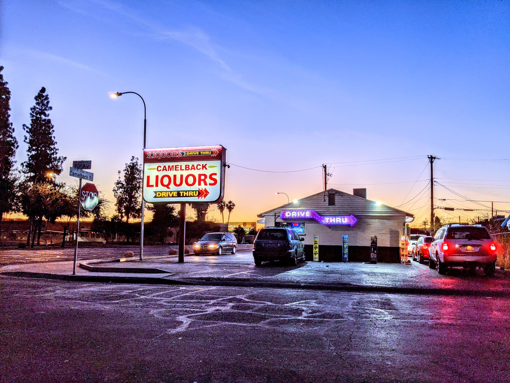 Camelback Liquors is a popular store known for its great selection of drinks, snacks, and tobacco products. Customers appreciate the friendly staff and quick service, even during busy times. The store has a drive-through with three windows, ensuring minimal wait times. Many visitors have had positive experiences, noting that they often find everything they need at low prices. While some reviews mention a less-than-friendly encounter with daytime staff, the overall sentiment is mostly positive. The owner is recognized for being fair and willing to negotiate prices, especially on multiple items. Regular customers value the store's consistent quality and special deals, making it a go-to spot for many. Camelback Liquors also stays open on holidays, adding to its appeal.