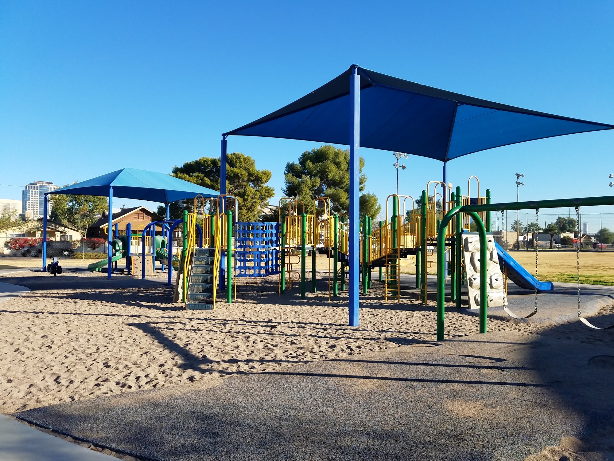 Central Park Recreation Center is a long-time Phoenix favorite and a hidden gem in the heart of the city. The park is very nice, clean, and well-maintained with a clean, graffiti-free playground. It is extremely nice for young children and is not overly crowded. The area offers a playground, picnic tables, a grill, and lots of grass space for family gatherings and fun. Management and volunteers are noted as being very nice. The park also hosts community events like historical presentations. A minor note is that the restrooms are sometimes closed. It is highly recommended for the entire family to create great memories.