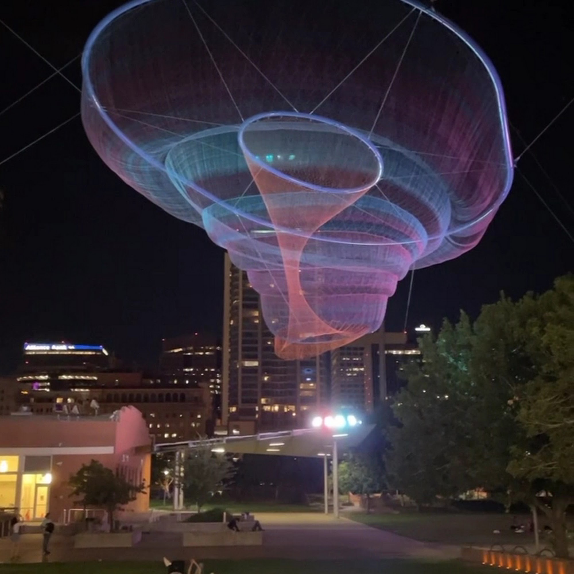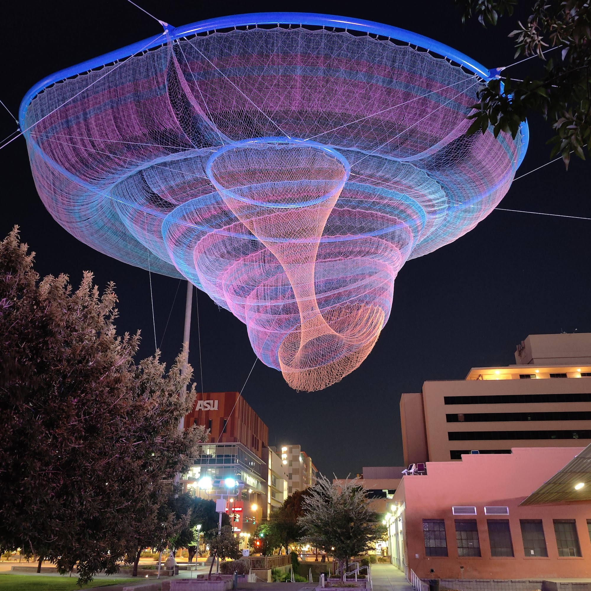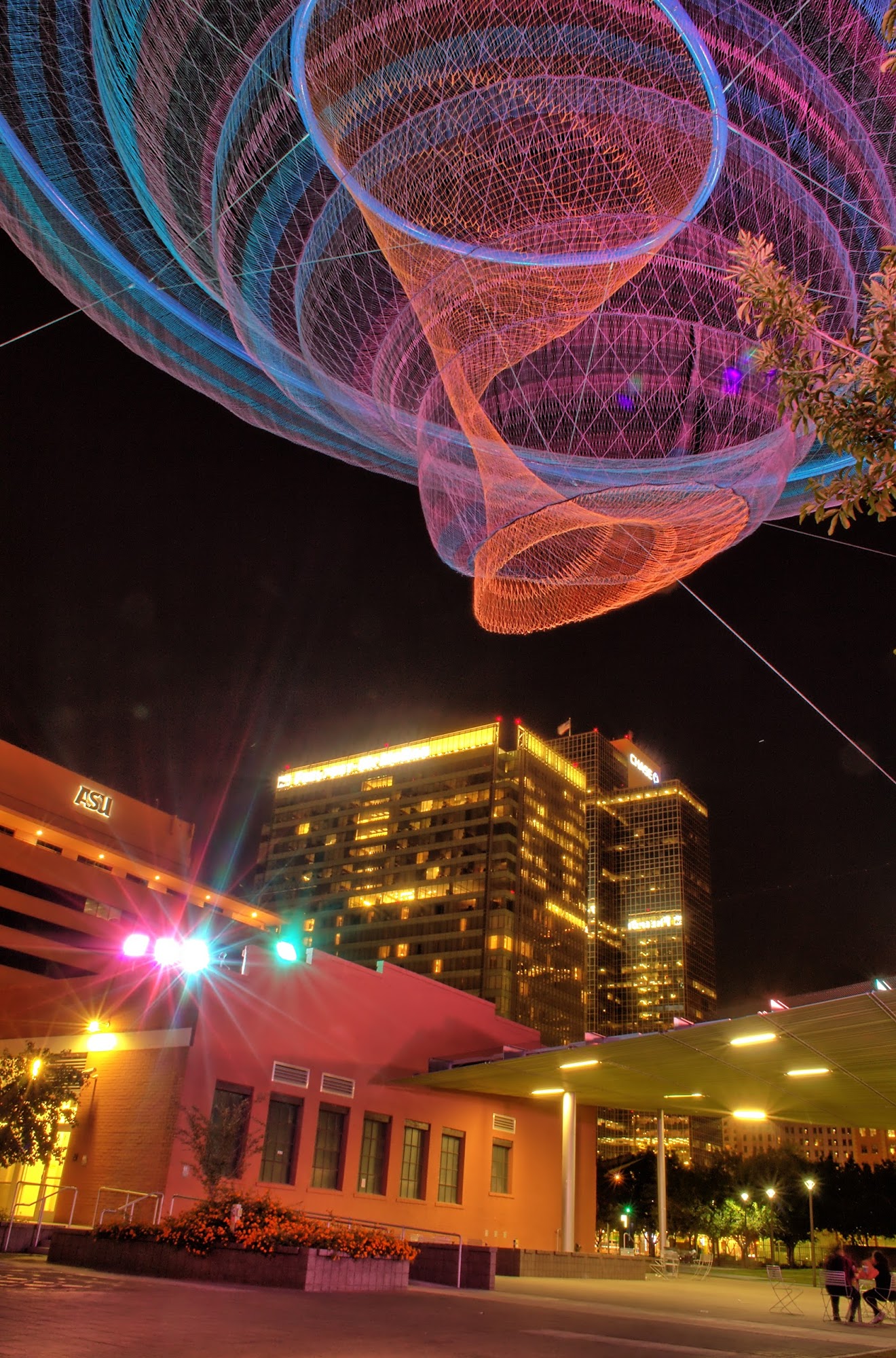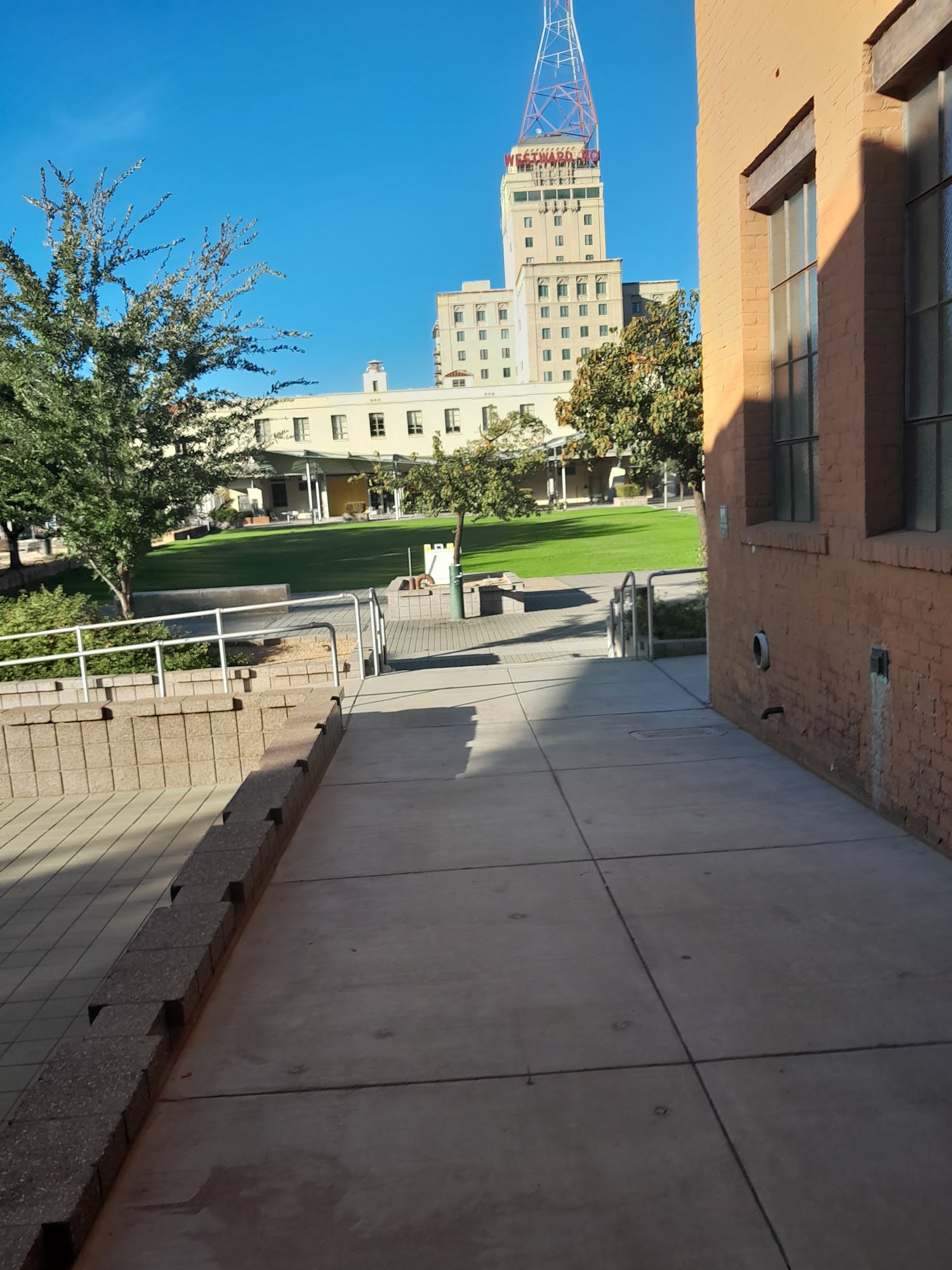 Civic Space Park is a vibrant urban oasis located in downtown Phoenix, offering a blend of nature, art, and community spirit. This park features a band stage, fountains, and unique light installations, making it a fantastic spot for relaxation and enjoyment. With ample open grass areas, it is perfect for families, pets, and anyone looking to unwind under the sun or enjoy a picnic. The park is especially beautiful at night, showcasing a stunning backdrop of illuminated high-rise buildings and the captivating "Her Secret Is Patience" sculpture, which adds an artistic touch to the skyline. Civic Space Park is easily accessible via light rail and bus, though parking can be challenging. It serves as a popular gathering place for residents, students from nearby Arizona State University, and visitors, who often engage in activities like studying, practicing yoga, or attending community events. The park incorporates sustainable design features, such as solar panels and pervious concrete, aligning it with modern environmental values. Whether enjoying a serene stroll, capturing beautiful sunset photos, or attending a performance, Civic Space Park is a must-visit destination for anyone seeking a refreshing escape in the heart of the city.