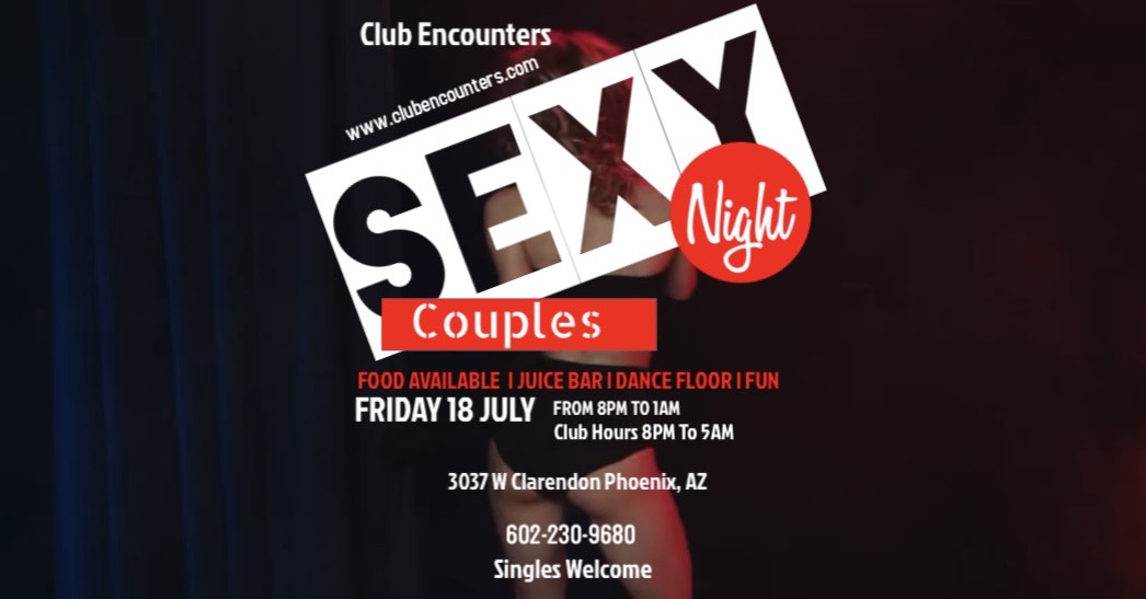 Club Encounters is a popular no-membership, no-reservation social club for swingers located in Phoenix, AZ. The main floor features a dance floor with a DJ, 2 video lounges, and a pool table. Visitors can also enjoy the secluded Jacuzzi Room with a shower and lockers, as well as the smoking patio. The club offers a juice and snack bar, and even has after-hours events. Reviewers praise the great atmosphere, fun vibe, and friendly staff. Some mention it's a hit or miss depending on personal preferences, with Mondays being couples night and weekends usually the busiest. Overall, Club Encounters is described as a welcoming and enjoyable social setting for swingers.