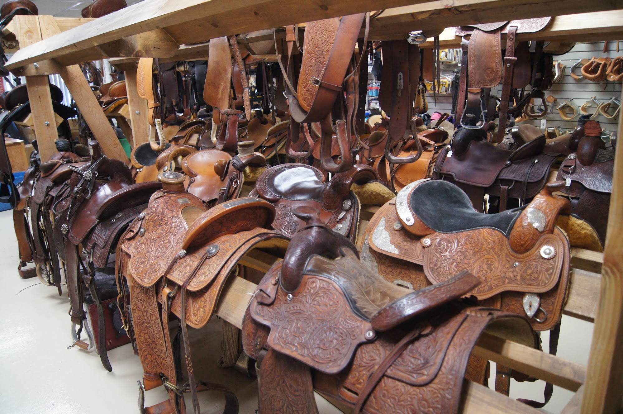 Real leather hand worked rain's, haunters , bridle's , beautiful beautiful use saddles. And so much more ..