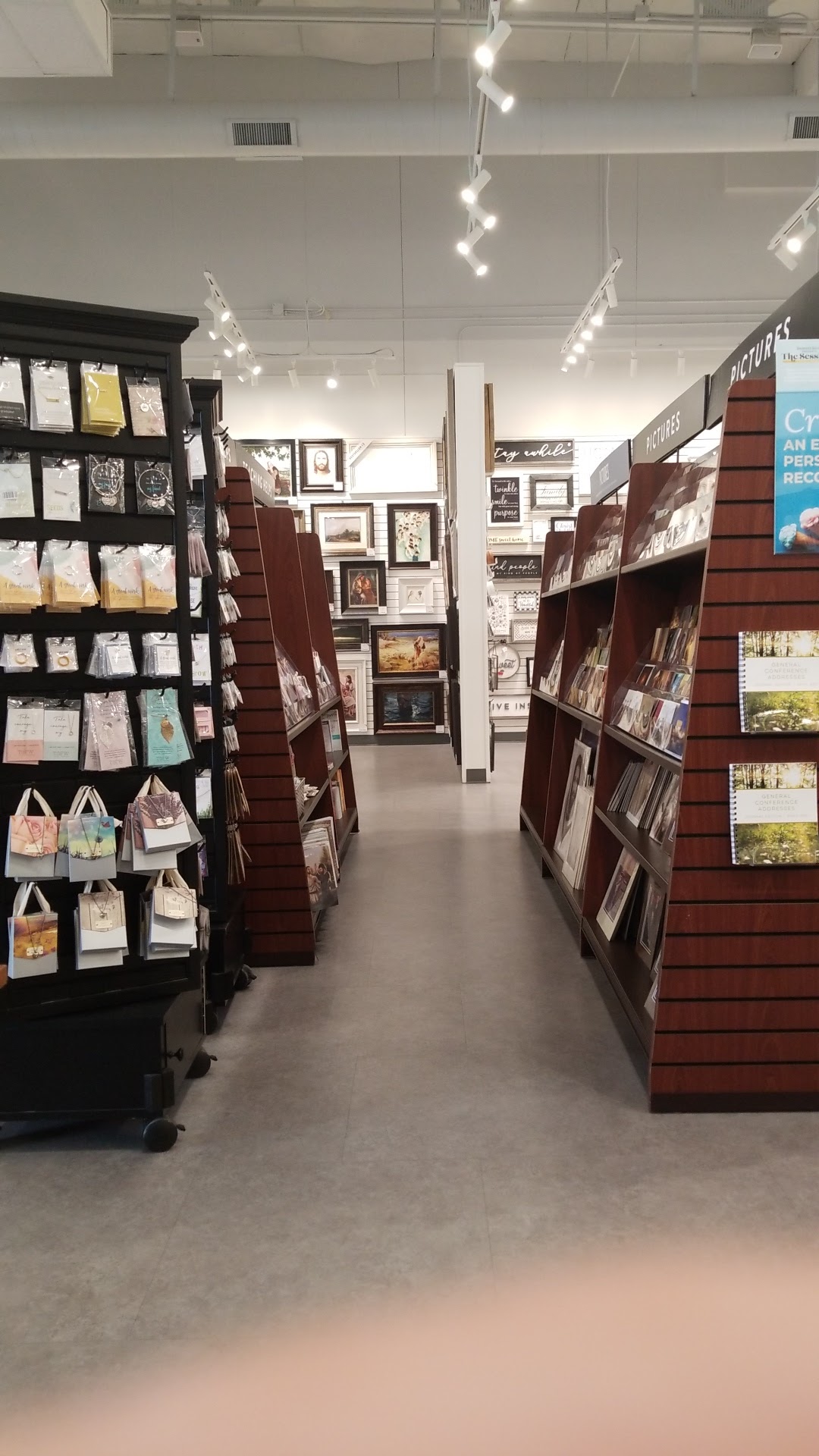 Deseret Book is a well-kept, beautiful Christian store that offers a wide range of religious items. It focuses on LDS products but also features many other Christian items, including picture cards of Jesus, home decor signs, angels, journals, and inspirational stickers. The store has a friendly, welcoming atmosphere, with helpful staff who often go out of their way to assist customers, making shopping a positive experience. Kids can enjoy playing at a table and collecting stickers while parents browse. Customers appreciate the store's good stock and variety of items suitable for gifts or personal use. The environment is positive and service-oriented, creating a pleasant shopping experience. However, some customers have noted issues with email responses and difficulty reaching staff by phone. Overall, Deseret Book is appreciated for its helpful staff, nice selection, and welcoming atmosphere, making it a convenient and enjoyable place to find religious items.