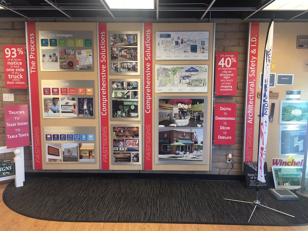 FASTSIGNS is a custom sign and visual solutions company that handles a wide variety of business needs. Customers report a great variety of signs available and praise the team's outstanding professionalism, dedication, and expertise. The visual idea experts work closely with clients to develop customized solutions, ensuring the finished product meets and exceeds expectations. Reviews highlight efficient, on-time service and super fast delivery, even in urgent situations. The quality of work is consistently on point, pleasing entire teams. Many are repeat customers who have trusted the professionals for over 15 years, stating no one does it better.