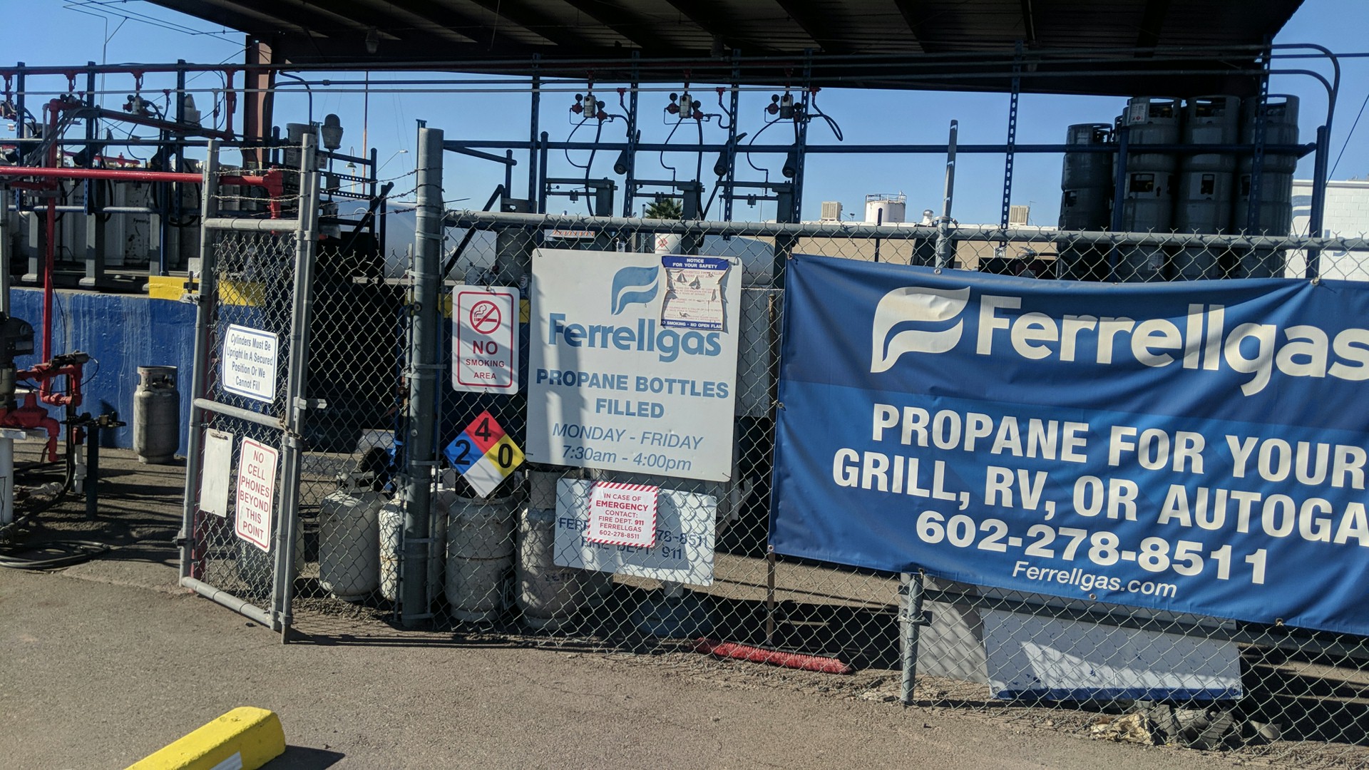 When I got to ferrellgas they were out of gas I need it for my forklift but the guy was helpful and told me where another place I could go to and for that reason I give him three stars