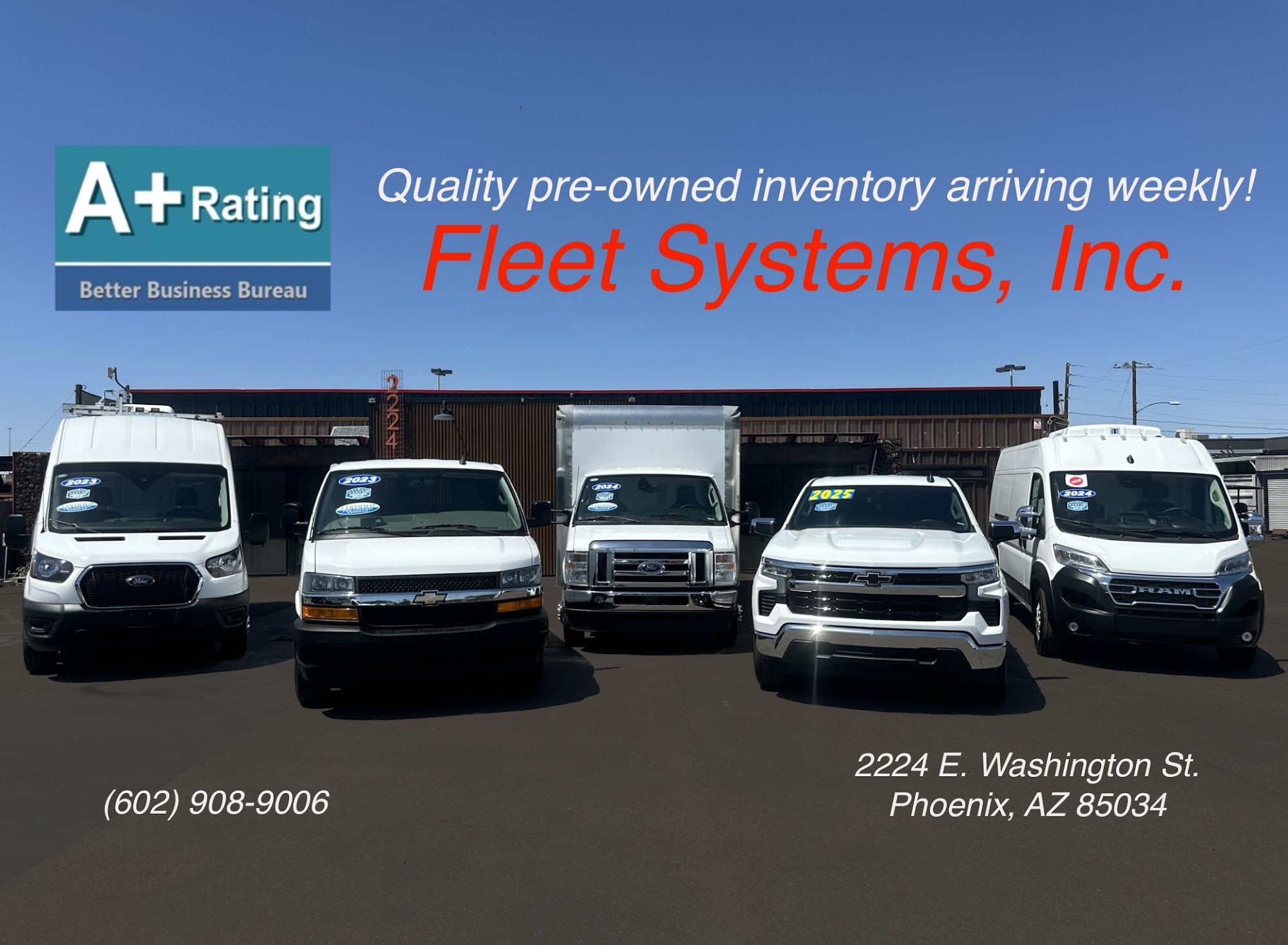 Fleet Systems, Inc. is a trusted family-owned business based in Phoenix, Arizona, specializing in the sale of commercial vehicles and work trucks. They offer a wide selection of low-mileage cargo vans, box trucks, flatbeds, and fleet-ready work trucks suitable for contractors and service businesses. Customers appreciate the company’s focus on reliability, value, and friendly, honest service. The purchasing process is described as seamless and straightforward, with many customers mentioning the helpful and courteous staff who go the extra mile. Whether buying a single vehicle or a full fleet, clients find Fleet Systems provides affordable, work-ready vehicles with fast turnaround times and easy financing options. Customers from different states highlight the fair prices, honest dealings, and positive experience working with the owners, emphasizing that there are no high-pressure sales tactics. Many reviews recommend Fleet Systems for small and large businesses alike, praising their professionalism, support throughout the buying process, and the quality of vehicles offered. Overall, Fleet Systems is recognized as a reliable, friendly, and affordable source for commercial vehicles in Arizona.