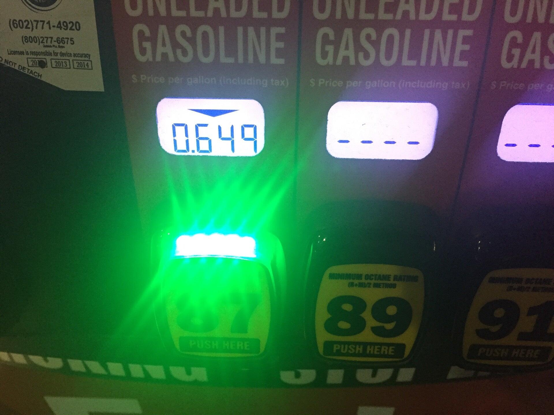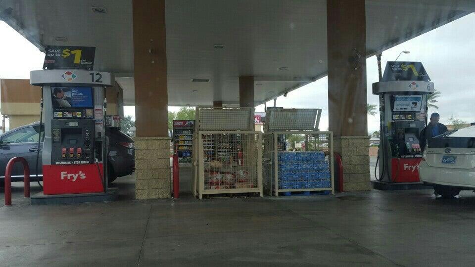 You get 10 cents off every hundred dollars you spend. So if you spend 400 dollars on groceries then you get 40 cents off the gas. You use this station alot, prices are in line with local average. Clean and well stocked, Diesel available. Use Fry's fuel points. You love getting your gas here and saving more money from the gas since it is ridiculously overpriced.