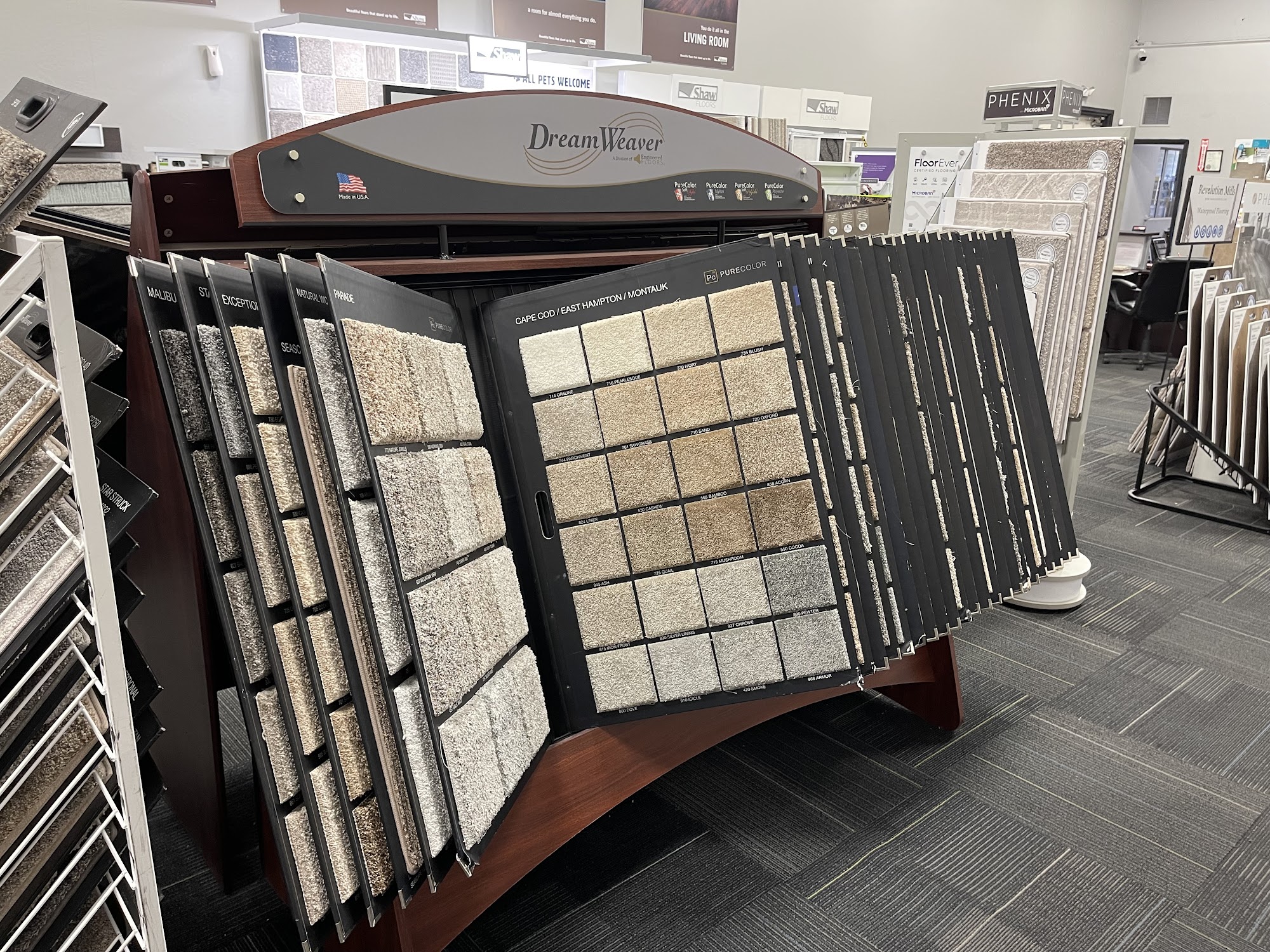 Large selection, helpful staff. Not pushy on sales, but also have the best prices. When a manufacturer's defect made $8,000 worth of carpet unusable, they resolved the issue promptly and fairly.