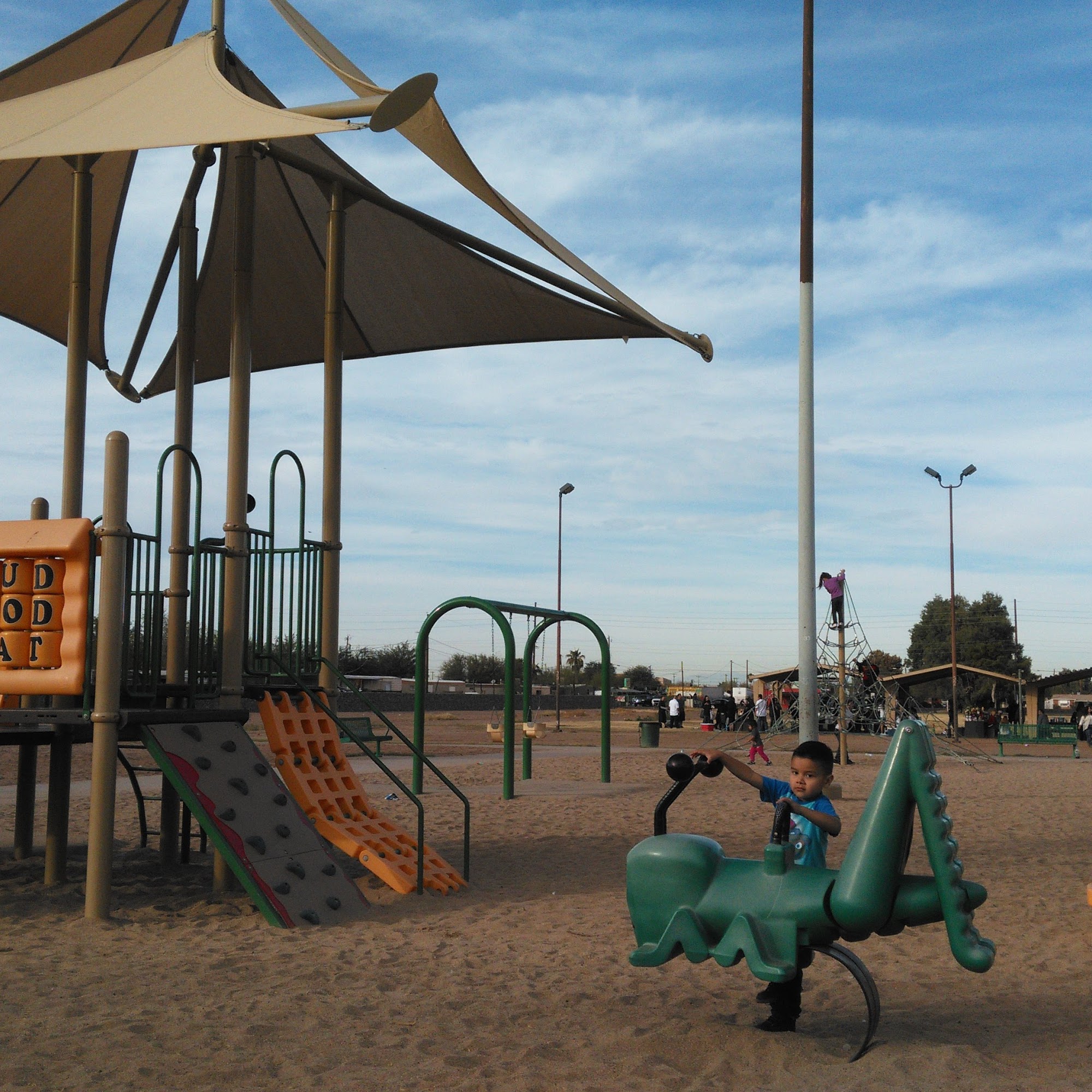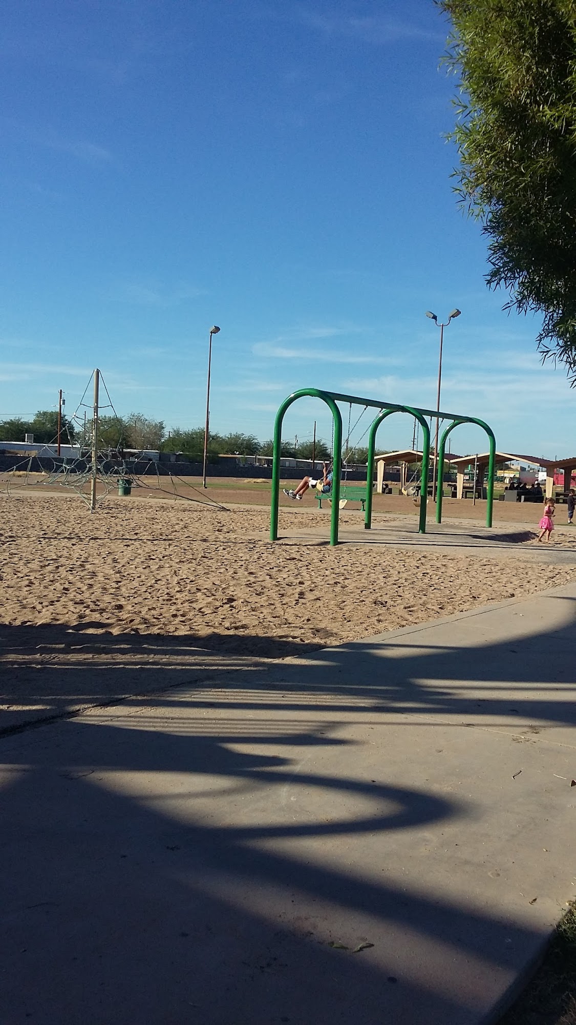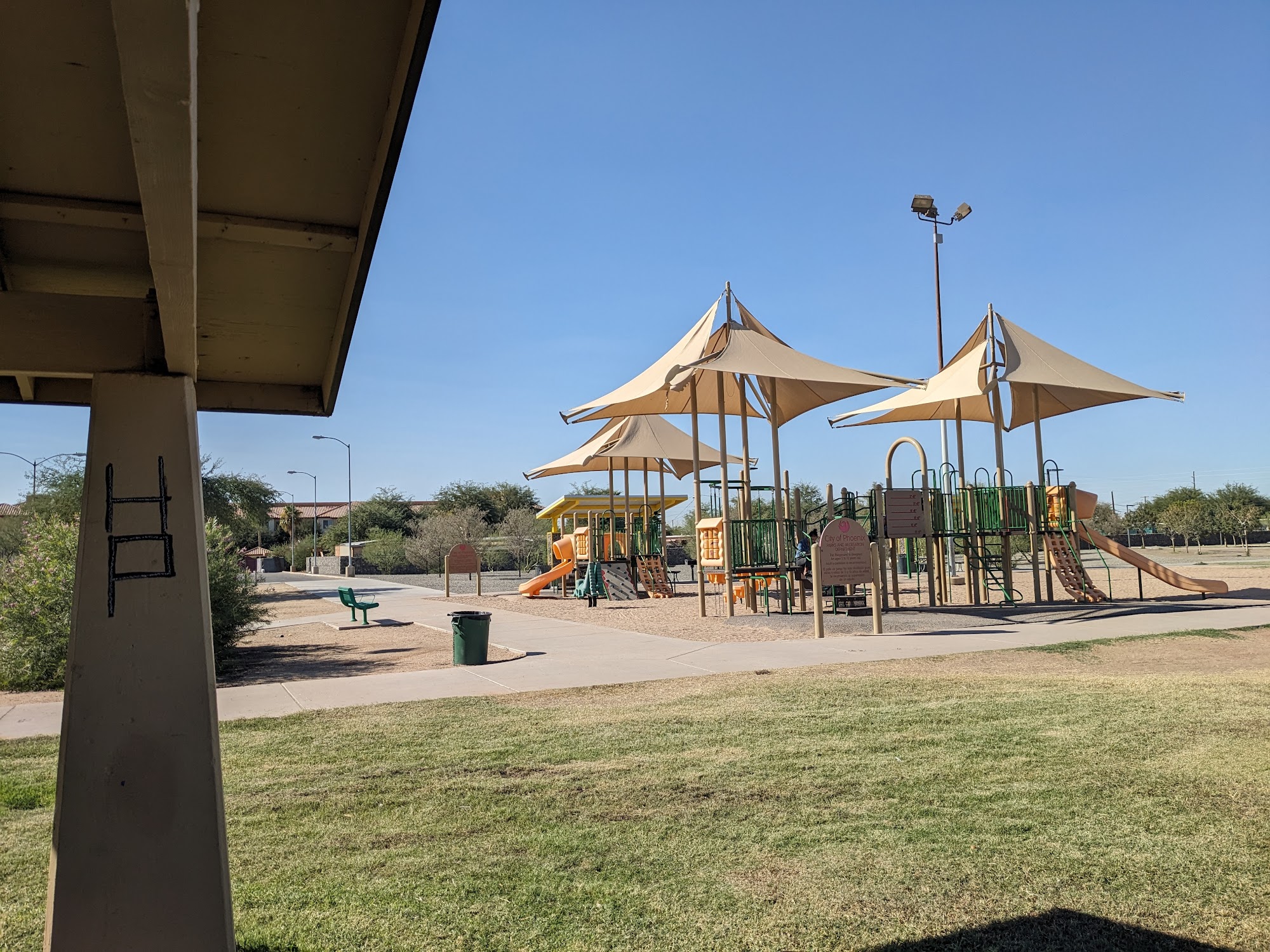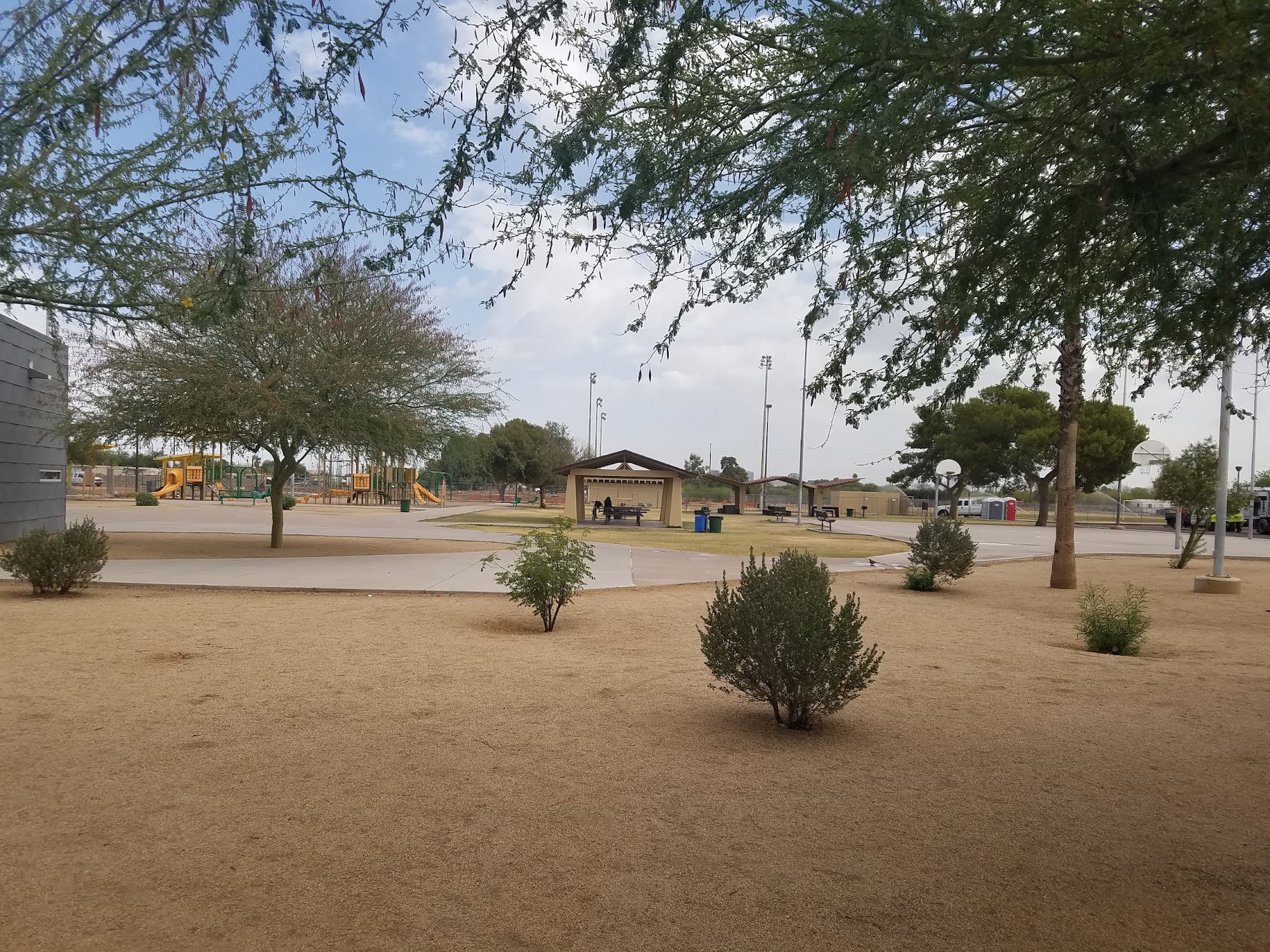 Hayden Park is a large, open space with plenty of benches and shaded picnic areas. It features a big playground, basketball court, and ample parking. The park is dog-friendly, with many people letting their dogs off-leash. Visitors can enjoy activities like volleyball, even late at night, and observe a diverse crowd. However, some concerns include the presence of individuals engaging in drug use and fast-driving cars in the parking area.