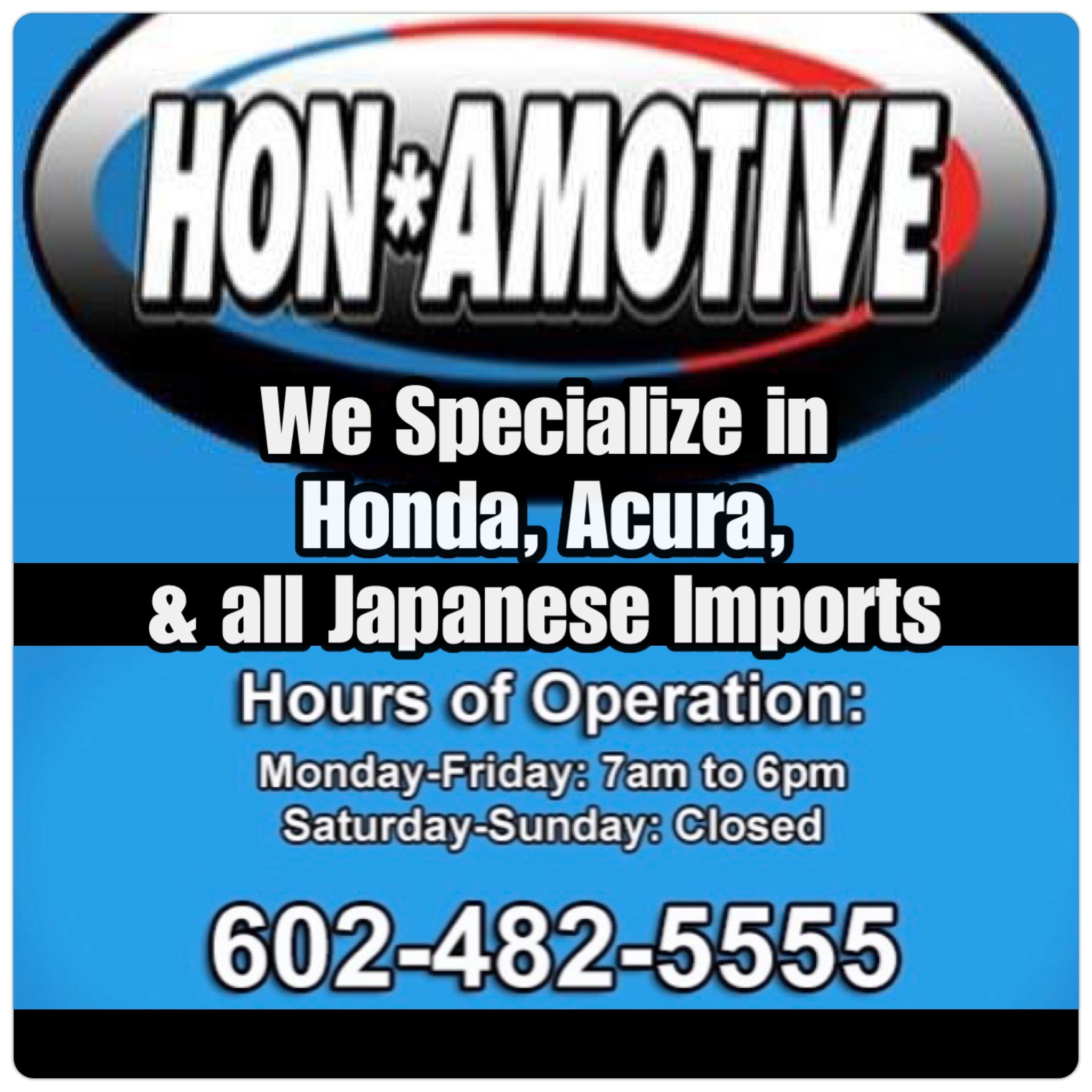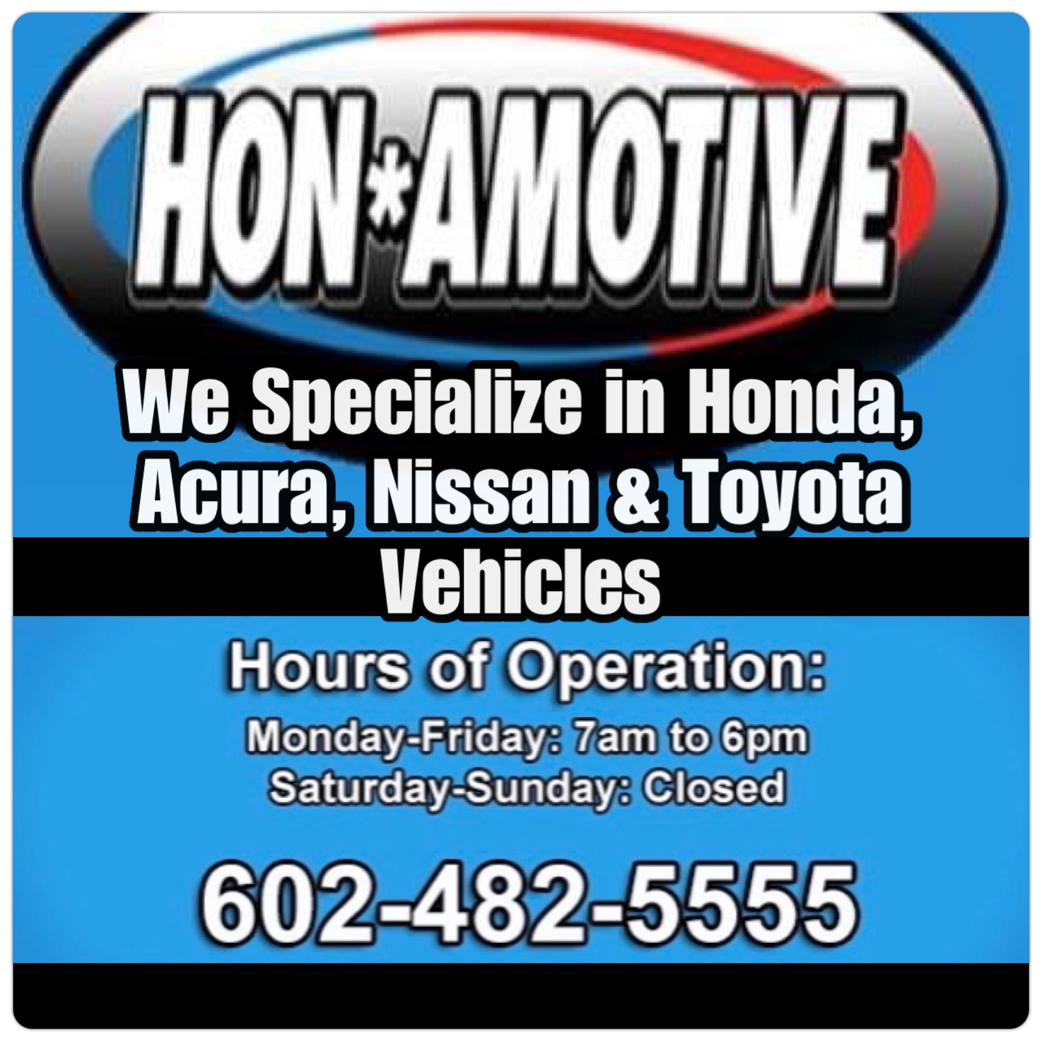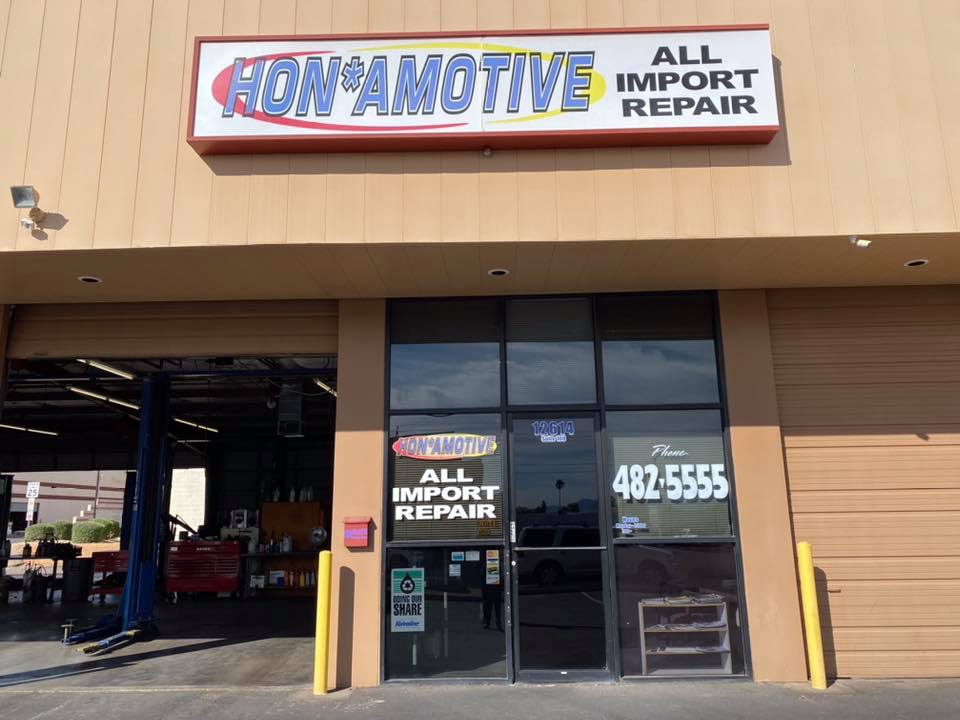 Hon Amotive is a certified auto mechanic shop specializing in imports like Honda, Acura, Toyota, and Nissan. The shop is known for being fast, friendly, honest, and knowledgeable. They perform dealer-quality work but only fix what needs to be done, providing reasonable and fair pricing that is less expensive than dealerships. Customers report being consistently satisfied with the level of service, describing the team as great and the people as nice. Many have been coming for years and wouldn't go anywhere else, often recommending the shop to friends and family. Services range from simple oil changes to more complex repairs. The business is located just north of Cactus on Cave Creek Road, behind the Home Depot.