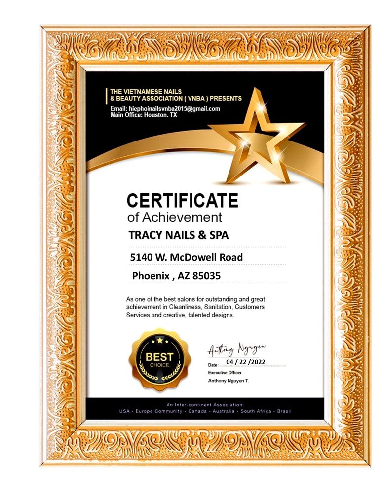 Tracy Nails & Spa offers a fantastic experience with exceptional service and attention to detail. Customers appreciate the friendly staff, who ensure clear communication and provide gentle care during treatments. The salon may not be fancy, but it delivers high-quality manicures and pedicures that leave clients impressed and satisfied. Located conveniently in a strip mall, it is an excellent choice for those in need of nail services, with tasty dining options nearby for aftercare. Many highly recommend this salon for its welcoming atmosphere and skilled services.