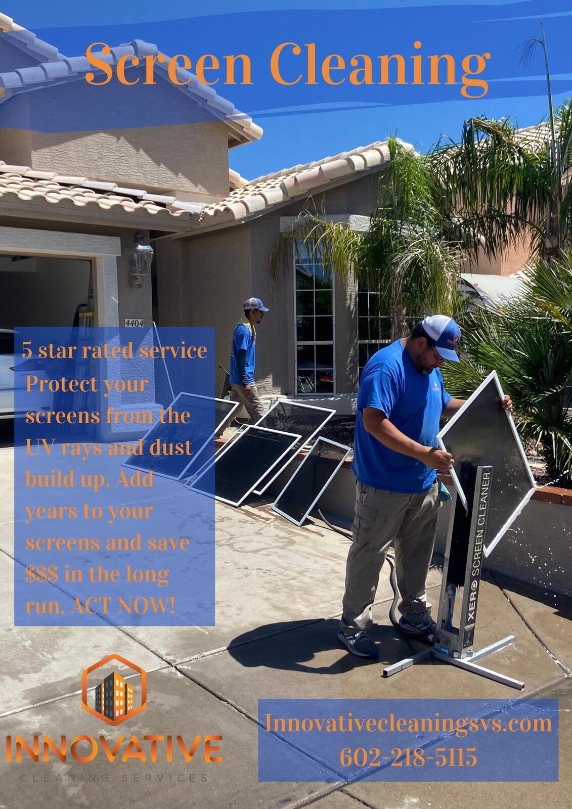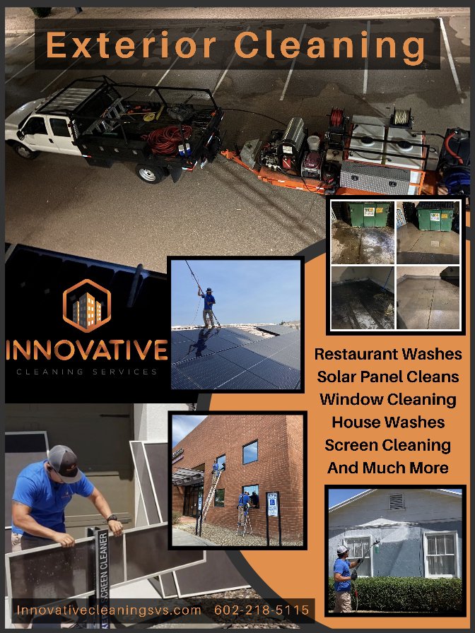 Innovative Cleaning Services is a top-rated full-service cleaning company based in Phoenix, AZ, specializing in window cleaning and sunscreen restoration. They offer services for both residential and commercial properties, ensuring streak-free and spotless windows. Their patented sunscreen cleaning process revitalizes sun screens, making them look brand new. Customers have praised the team's punctuality, integrity, and effective communication throughout the process. The owner and his team consistently deliver high-quality work, completing jobs on time and within budget. Reviews highlight their efficiency, with many clients expressing satisfaction with the quick turnaround for services like power washing and window cleaning. Overall, Innovative Cleaning Services is recognized for its reasonable prices and exceptional customer service, making it a reliable choice for anyone in need of cleaning solutions.