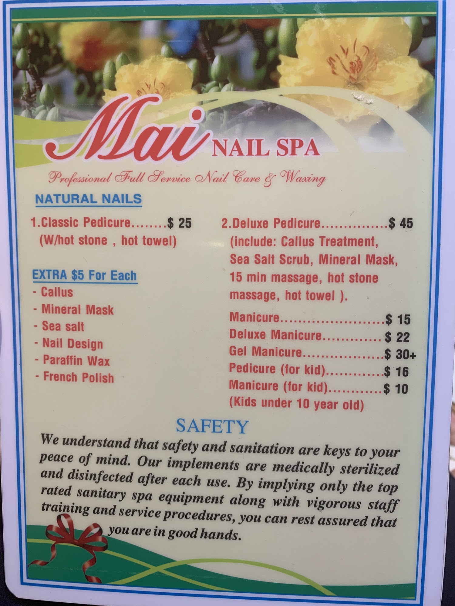 Mai Nail Spa is a trusted local salon known for its friendly and nice staff, creating a calming and positive atmosphere. Customers appreciate the easy scheduling and reasonable prices, along with the shop’s clean environment. Many have been coming here for years and value the consistent, impeccable work on manicures and pedicures. The salon offers a good variety of nail polish colors and provides extra services like foot and leg massages, which clients find very relaxing and worth trying. Staff are responsive and helpful, especially when customers bring up preferences or concerns, making each visit enjoyable. The atmosphere is peaceful, and overall, the experience is welcoming and supportive of supporting local businesses. Whether walk-ins or appointments, customers leave happy with the results. The staff’s attention to detail and dedication to quality keep clients returning regularly, making Mai Nail Spa a favorite go-to spot for nail care.