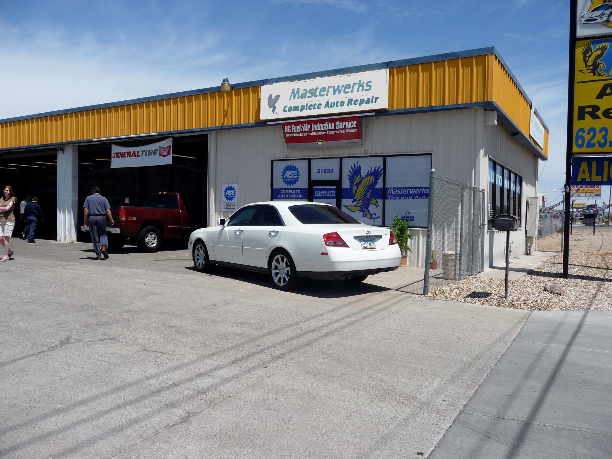 Masterwerks Tire and Auto is a premier automotive service provider in Phoenix, offering a comprehensive range of services to cater to all your vehicle's needs. Staffed by ASE-certified technicians, the shop specializes in precise wheel alignments, expert brake repairs, and meticulous auto electrical work. Customers can also rely on Masterwerks for durable tires, swift oil changes, and reliable auto air conditioning service. The business is known for its convenient drive-through facility and language assistance, ensuring a seamless and hassle-free experience for every customer. Reviewers praise the manager and team for their professionalism, expertise, and attention to detail, whether it's servicing a Tesla, Mercedes AMG, or Subaru. The competitive pricing and quality of parts used further set Masterwerks apart, making it a trusted go-to shop for all automotive needs. With a focus on customer satisfaction, Masterwerks Tire and Auto has earned a reputation for delivering exceptional service and maintaining high standards. Whether you need a routine maintenance check or a complex repair, this family-owned business is the reliable choice for your automotive requirements.