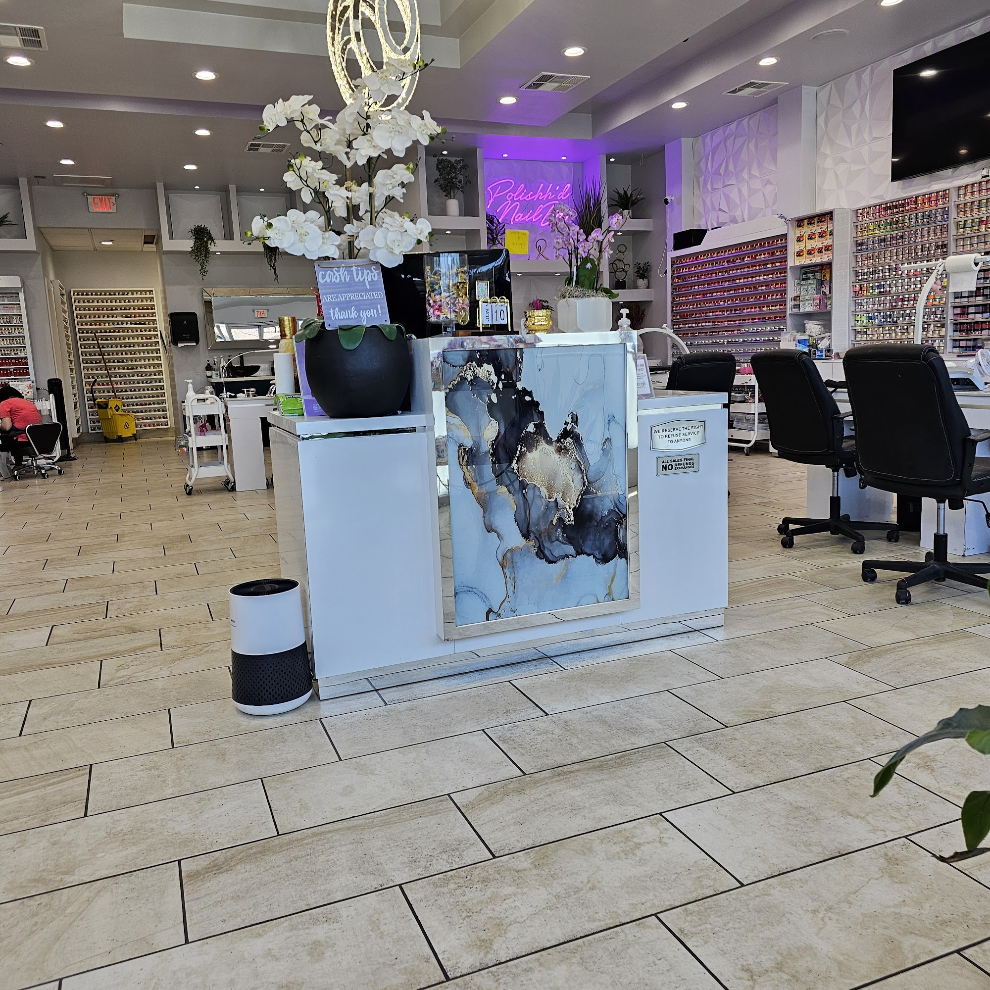 Polishh’d Nail Bar is a newly built, modern, and relaxing salon located in North Phoenix. It is not a typical nail salon, specializing in acrylic nails, nail art, manicures, pedicures, and waxing services. The salon is described as beautiful, aesthetic, immaculate, and very clean. They have over 500 plus colors from dip to gel and regular polish, with tons of nail art options. The staff is noted as creative, artistic, super friendly, and very knowledgeable, working together to achieve the designs customers want. Many customers report being satisfied and happy with the end results, stating they will definitely be coming back. The salon serves Phoenix and surrounding areas.