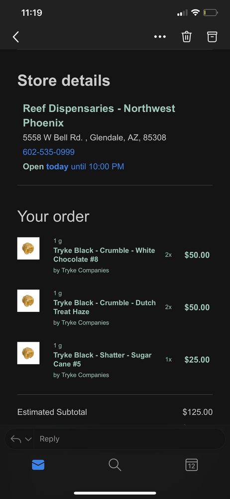 Curaleaf - Glendale East (Formerly Reef) is dedicated to providing premium, safe and reliable recreational cannabis and Medical products to our customers. Our wide selection of CBD & THC offerings include flower, pre-rolls, tinctures, vape cartridges, gummies, concentrates, capsules, edibles, and more offered by brands including Select. Our products are cultivated and produced with the highest standards. For access to the best cannabis deals, visit one of our cannabis dispensaries, or shop online to pre-order. Curaleaf - Glendale East is here to support all of your cannabis needs. Keep out of reach of children. For use only by adults 21 years of age and older.
